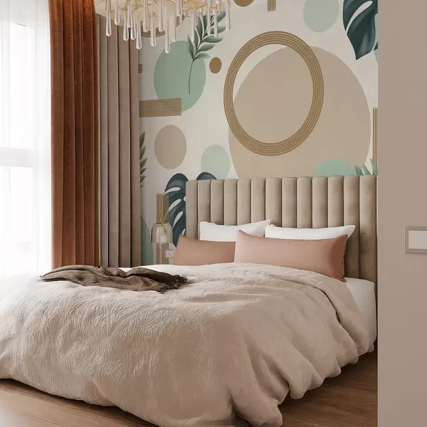 Stenske poslikave Geometrični vzorec z listi v zeleni barvni paleti Št. w05018v1