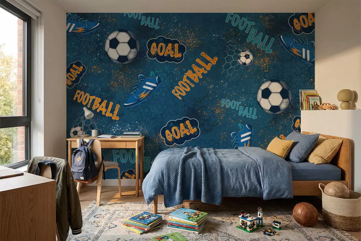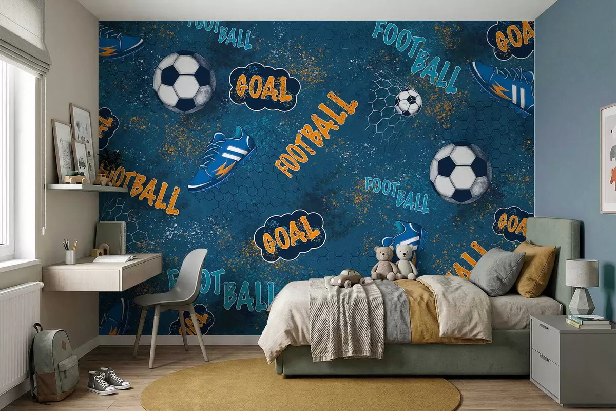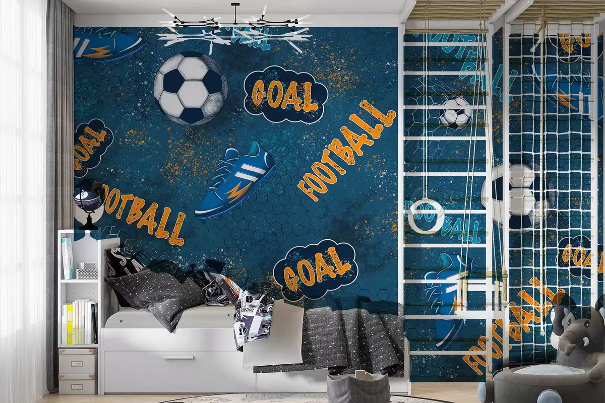 Stenske poslikave Otroški vzorec z žogami, čevlji in športnimi besedami Št. w05037