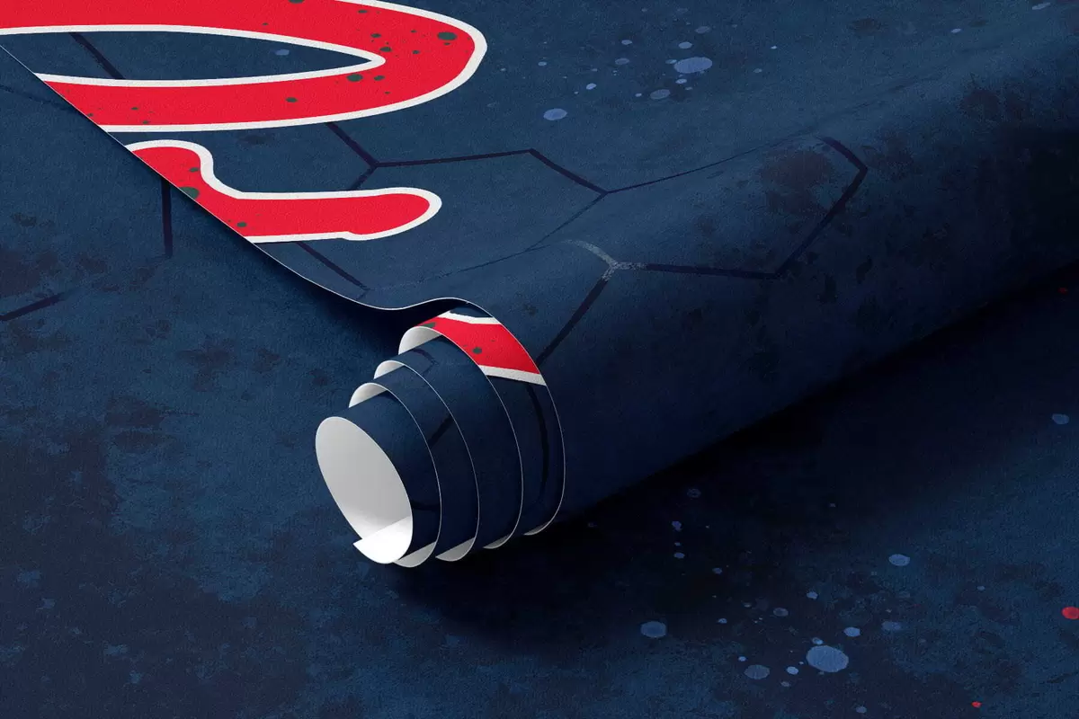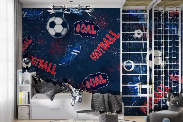 Stenske poslikave Ponavljajoč se vzorec z žogami, kopačkami in besedilnimi elementi Št. w05037v2
