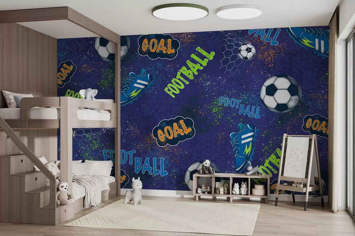 Stenske poslikave Otroški nogometni vzorec v temno modrih odtenkih Št. w05037v3