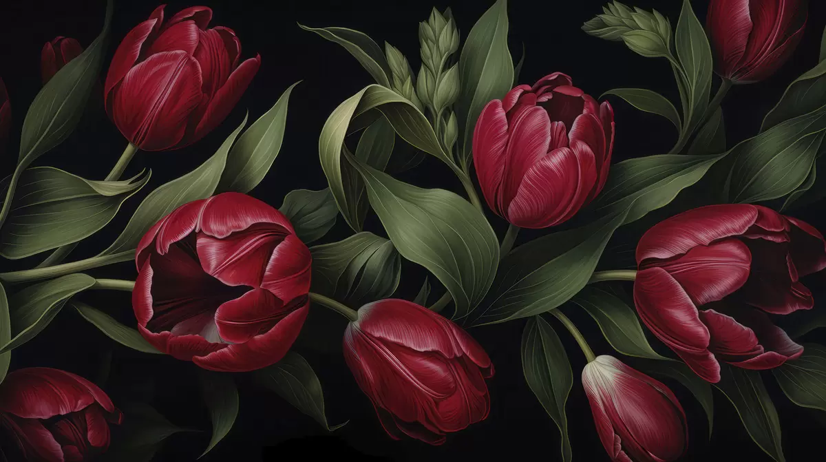 Stenske poslikave Rdeče tulipane noči Št. w05047