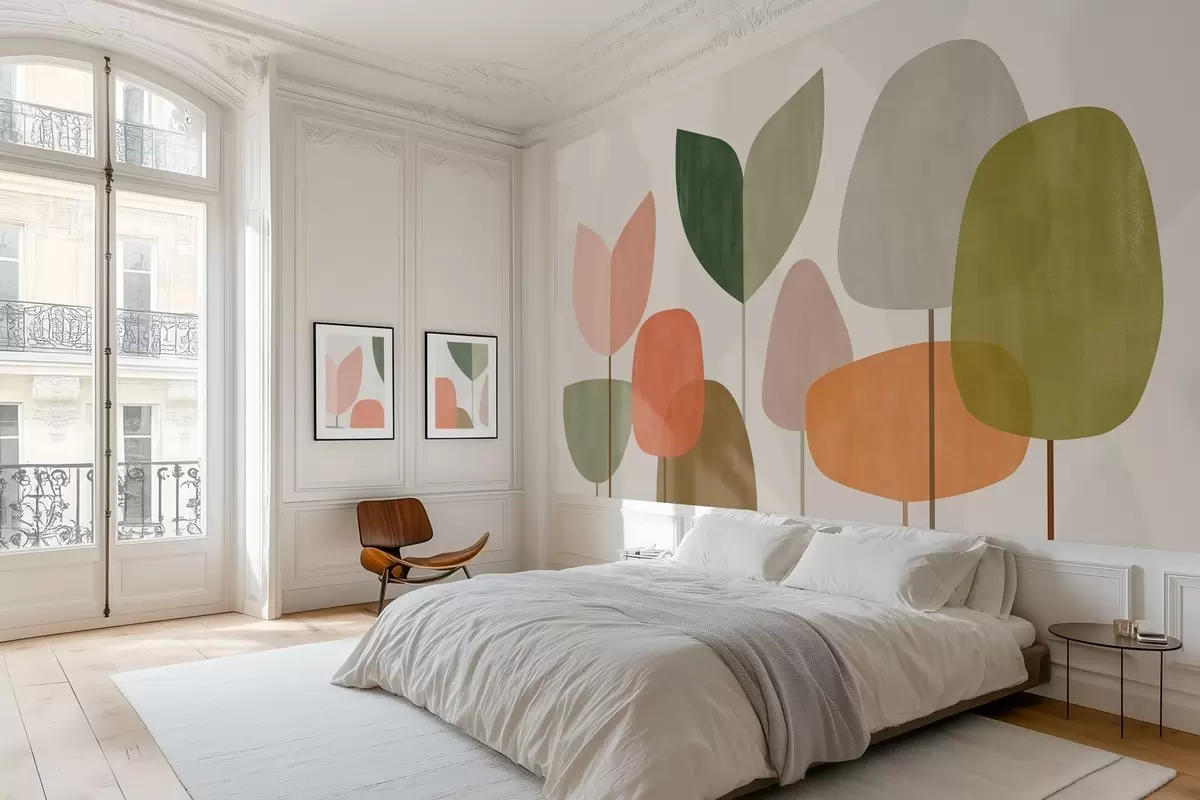 Stenske poslikave abstrakcijska drevesa v naivnem slogu Št. w05059