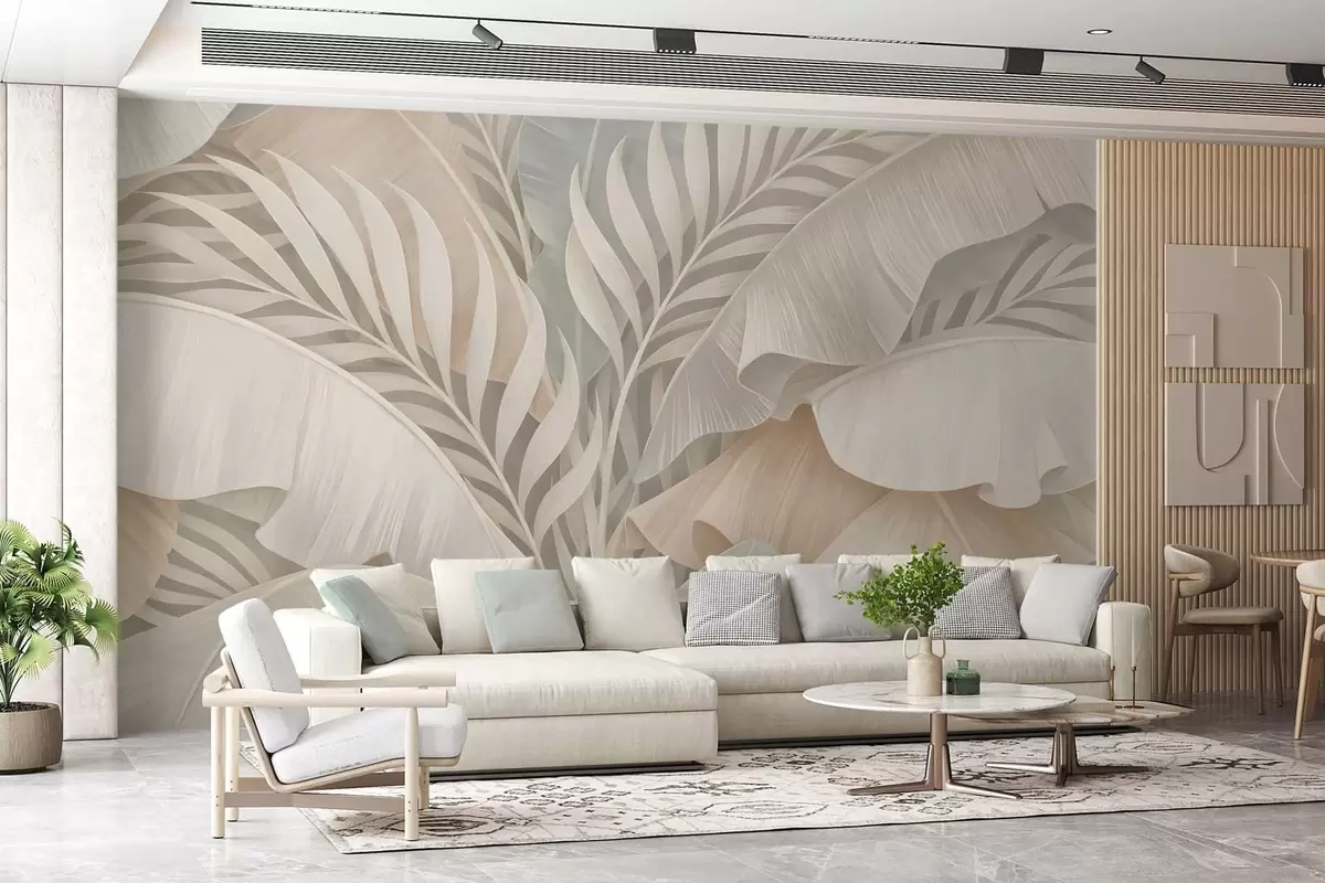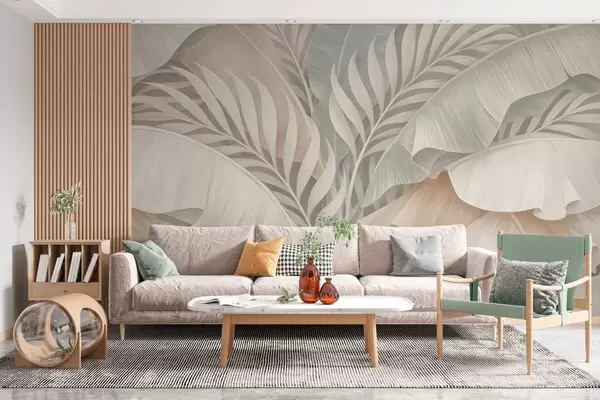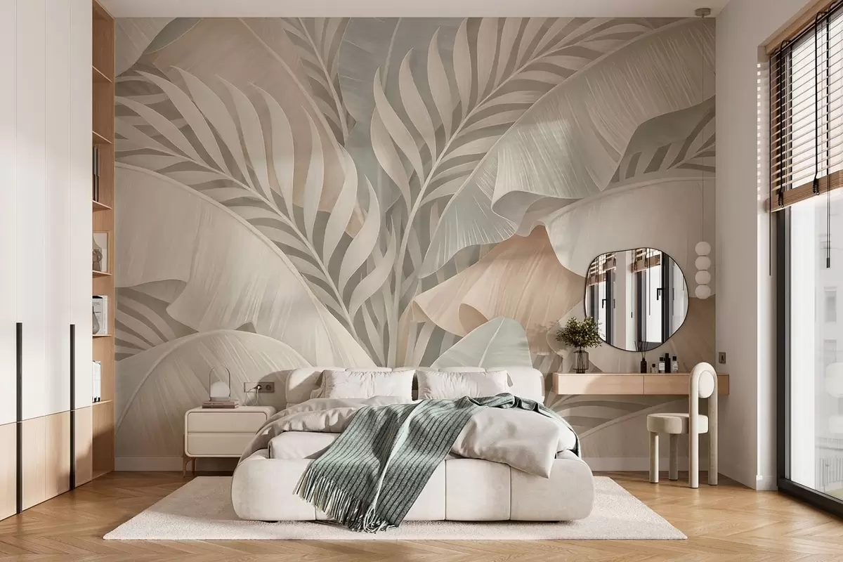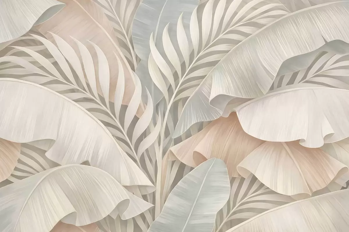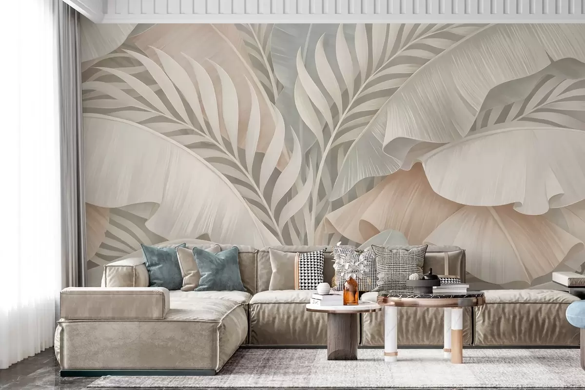 Stenske poslikave velika tropski listi v odtenkih breskve in motne turkizne barve Št. w05062