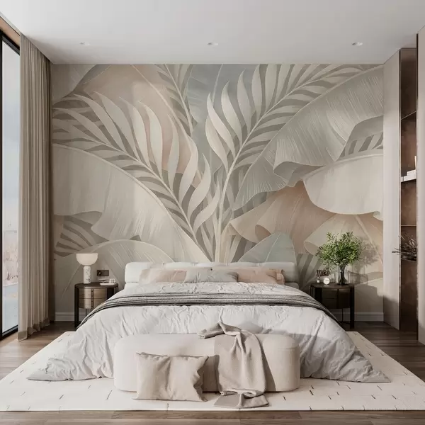 Stenske poslikave velika tropski listi v odtenkih breskve in motne turkizne barve Št. w05062