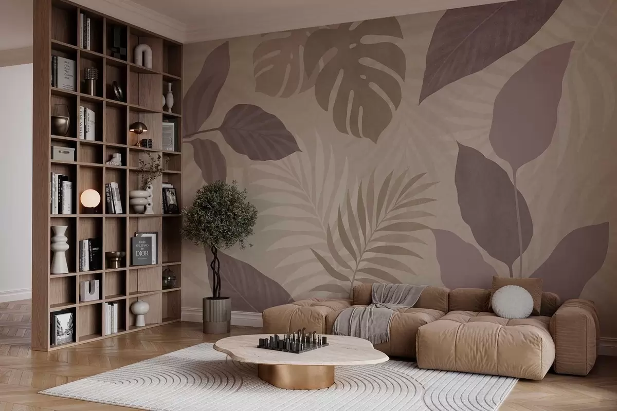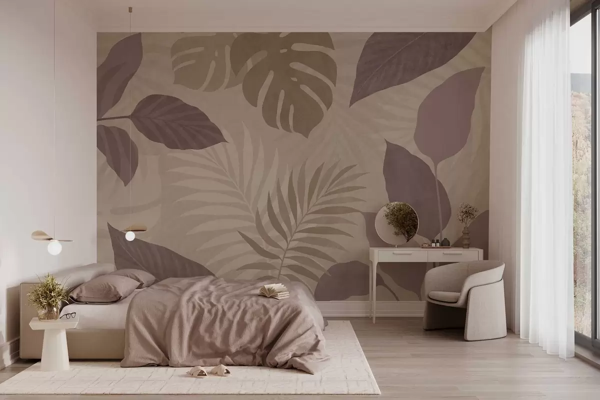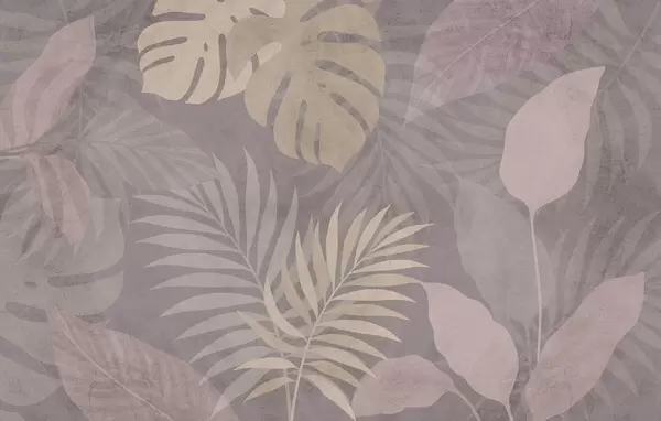 Stenske poslikave teksturirani tropski listi na peščenem ozadju Št. w05063