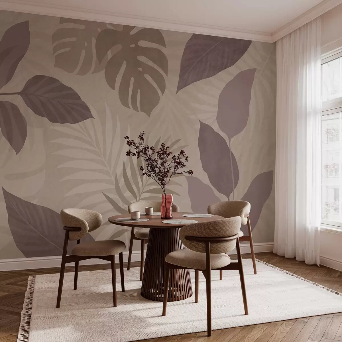 stenske poslikave teksturirani tropski listi na peščenem ozadju w05063