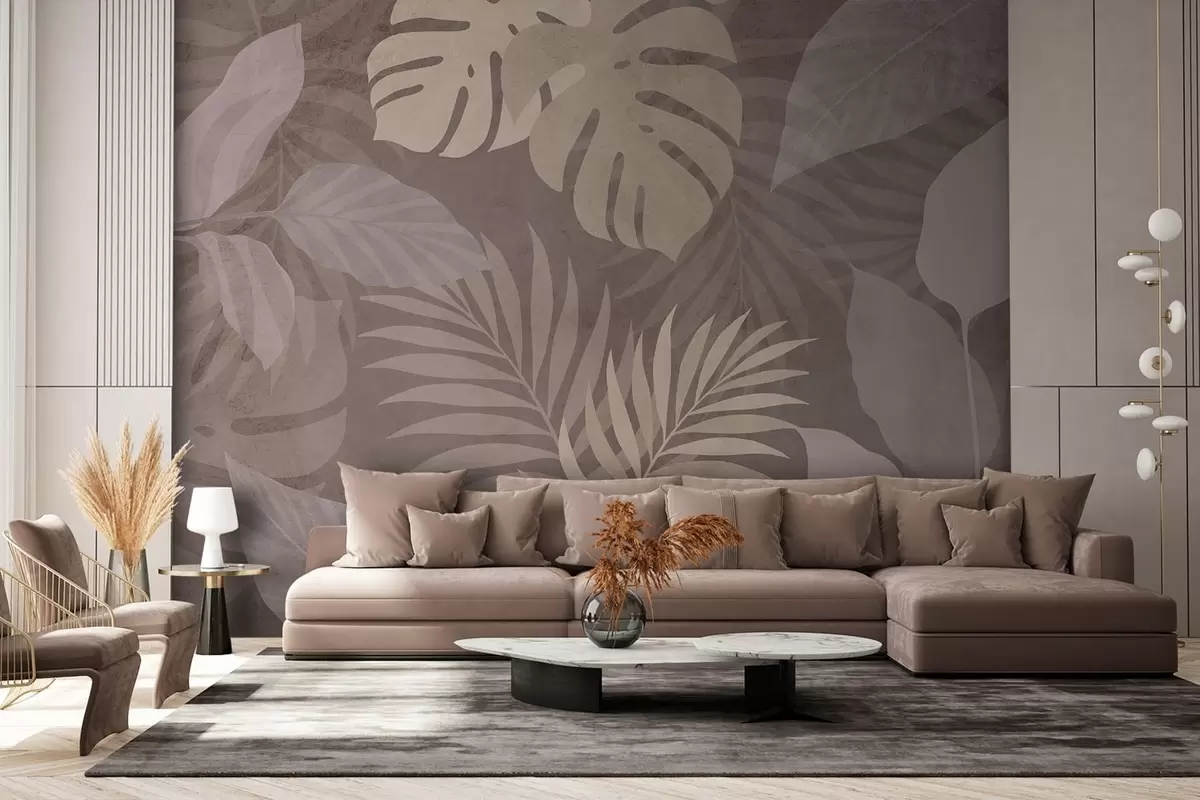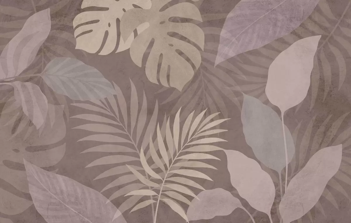 Stenske poslikave teksturirani tropski listi na čokoladnem ozadju Št. w05063v2