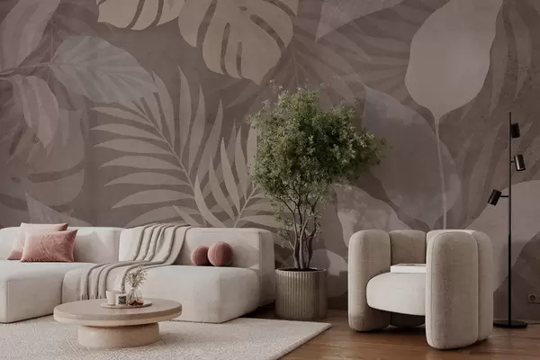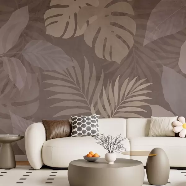 Stenske poslikave teksturirani tropski listi na čokoladnem ozadju Št. w05063v2