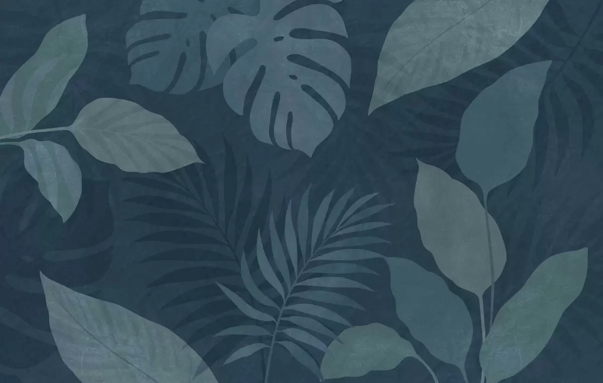 Stenske poslikave teksturirani tropski listi na temno modrem ozadju Št. w05063v3