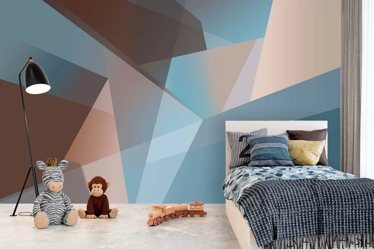 Stenske poslikave abstrakna geometrija v modrih in rjavih odtenkih Št. w05064