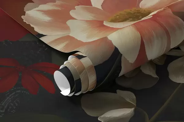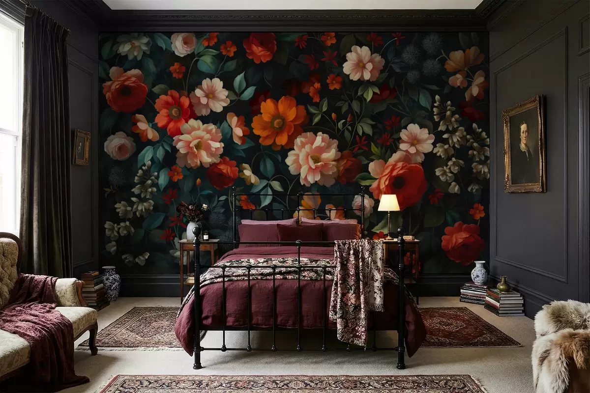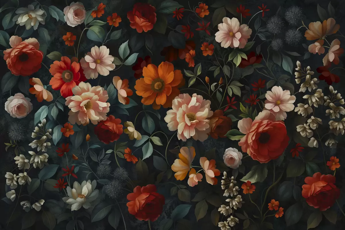 Stenske poslikave Temni cvetlični vzorec z bujnimi vrtnimi cvetovi Št. w05087