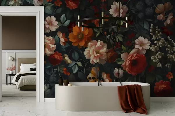 Stenske poslikave Temni cvetlični vzorec z bujnimi vrtnimi cvetovi Št. w05087