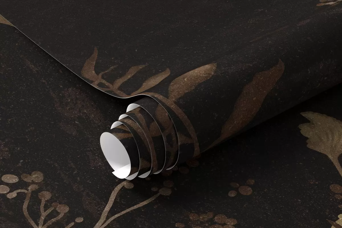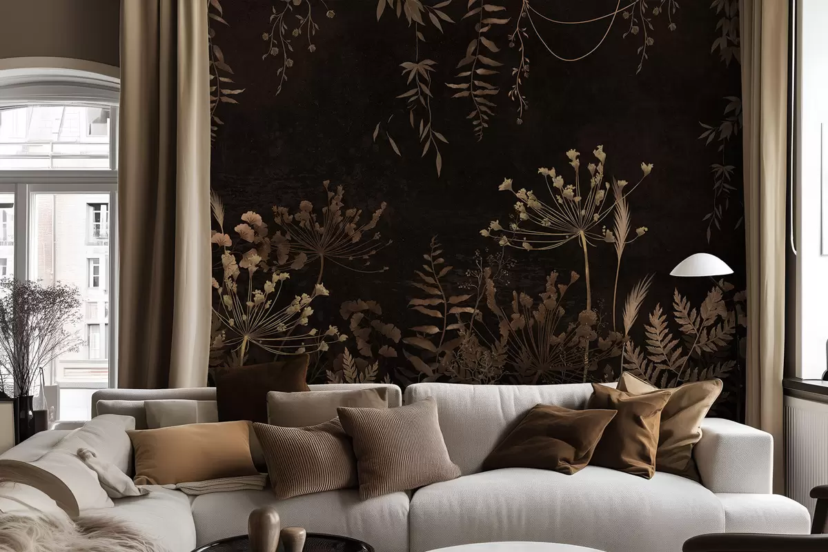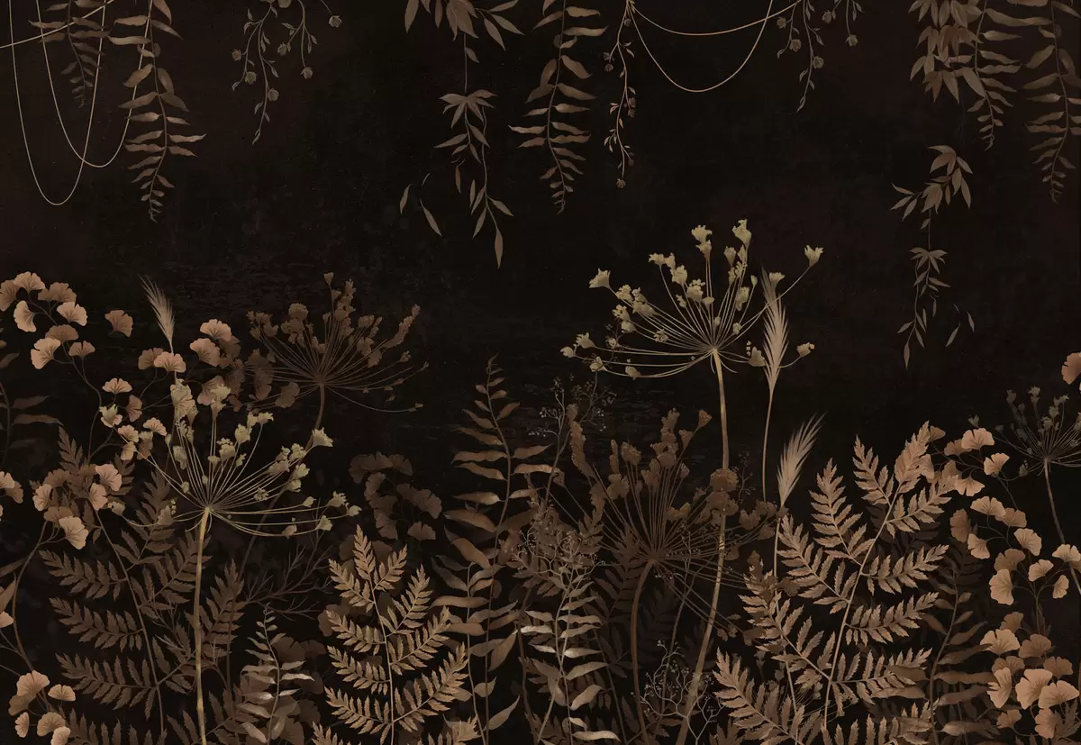 Stenske poslikave Temni botanični vzorec s cvetovi in travo Št. w05092v3