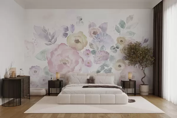 Stenske poslikave Mehka akvarelna kompozicija s cvetovi in listi Št. w05093
