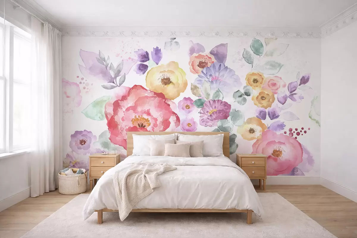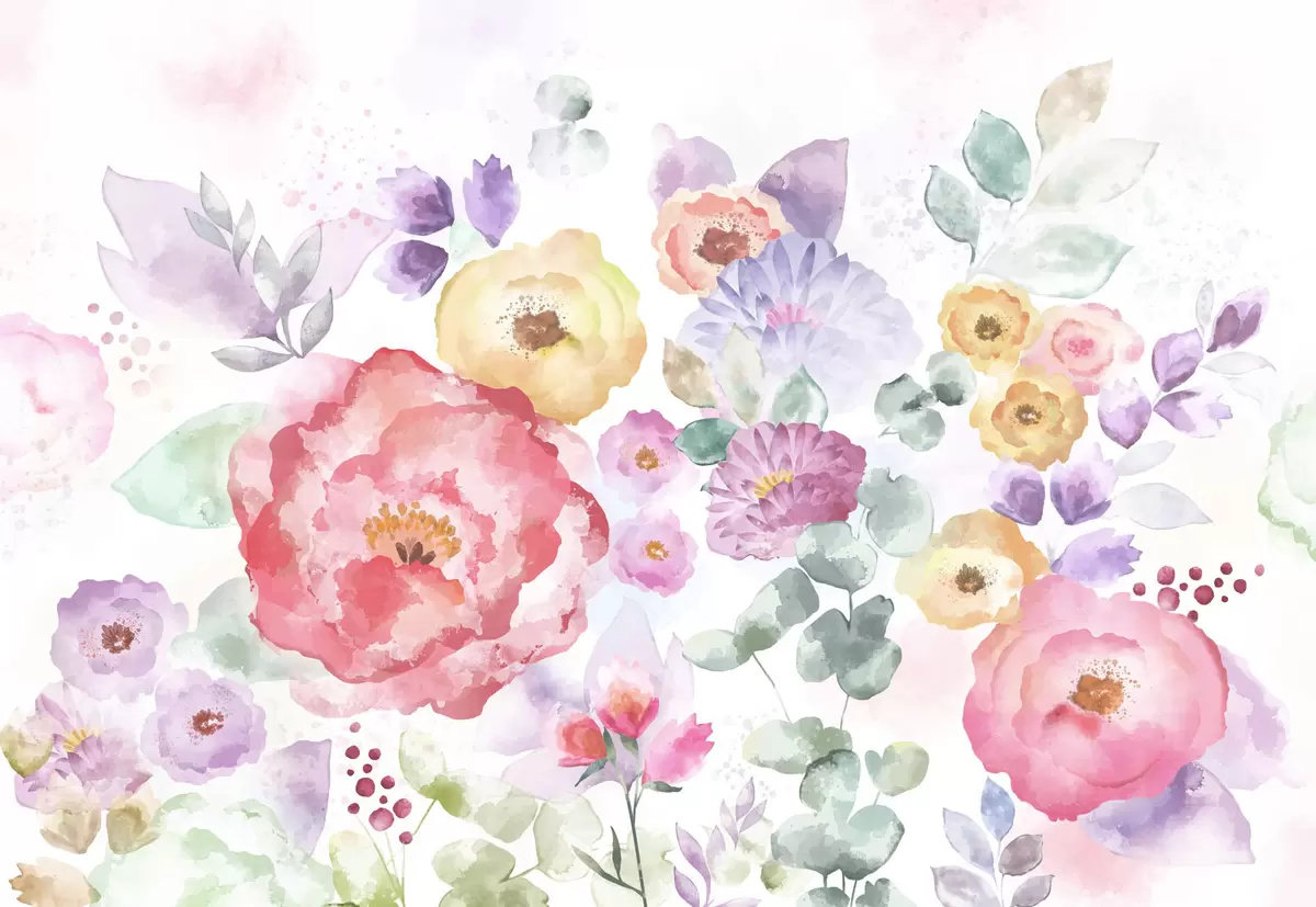 Stenske poslikave Pastelne akvarelne rože na svetlem ozadju Št. w05093v1