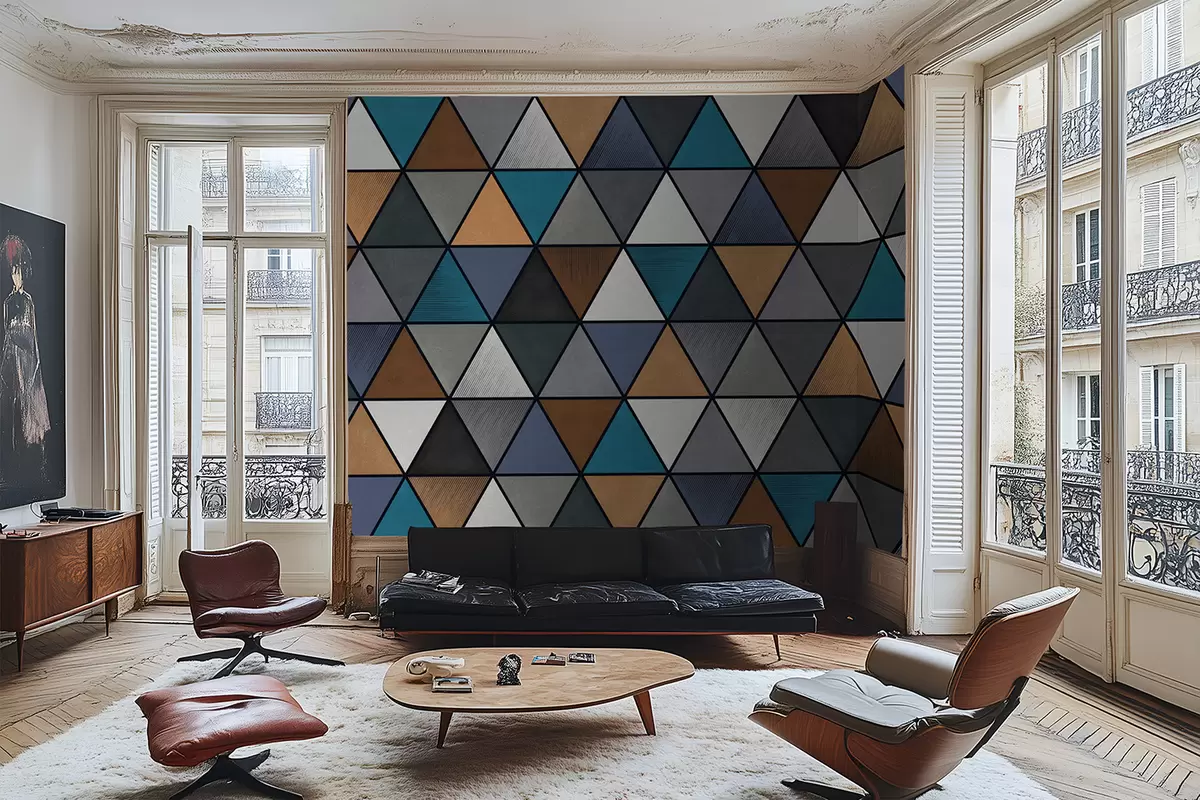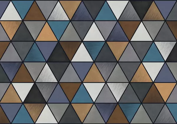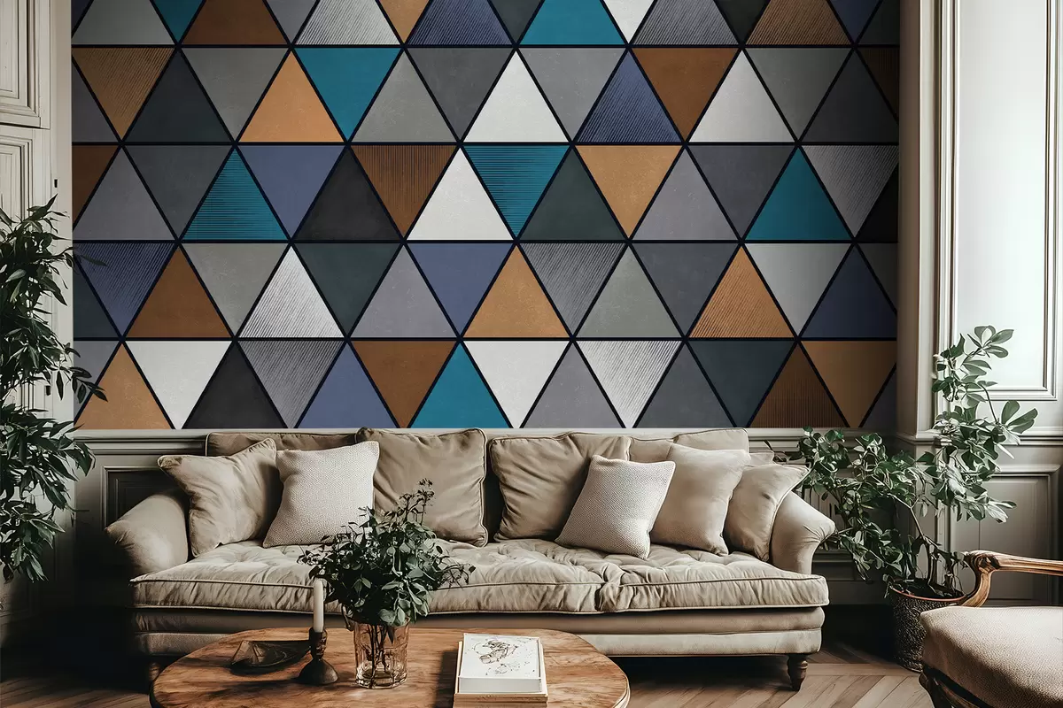 Stenske poslikave Trikotni geometrijski vzorec v modrih in toplih tonih Št. w05095