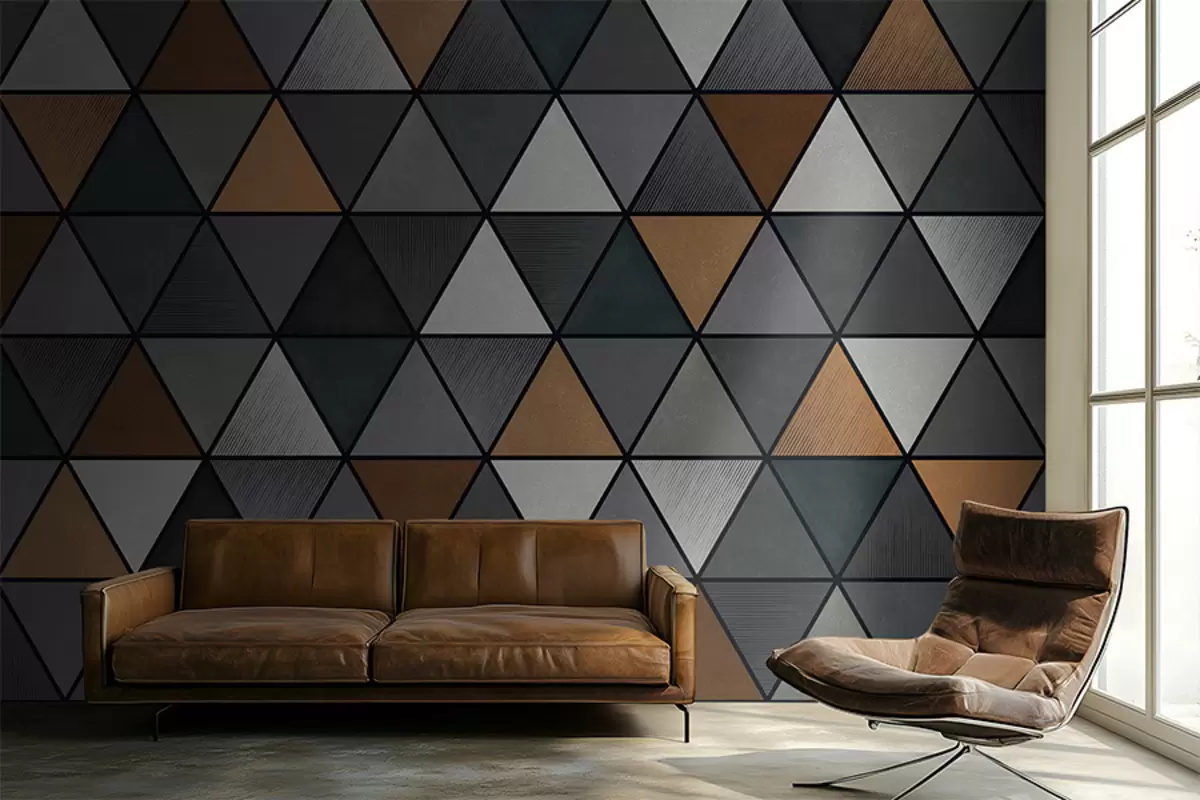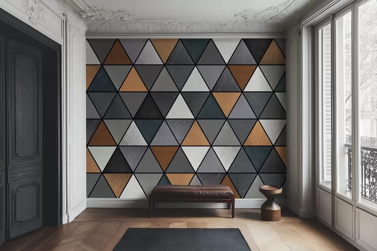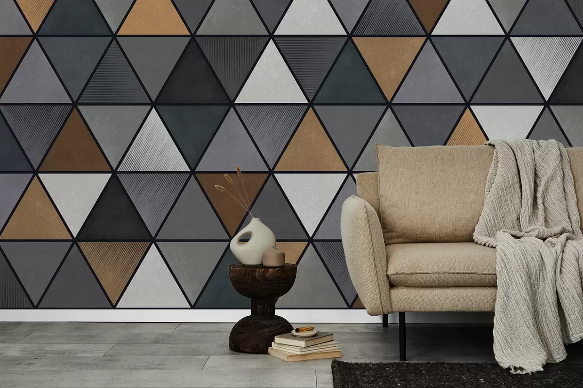 Stenske poslikave Trikotni vzorec s sivimi in toplimi odtenki Št. w05095v1