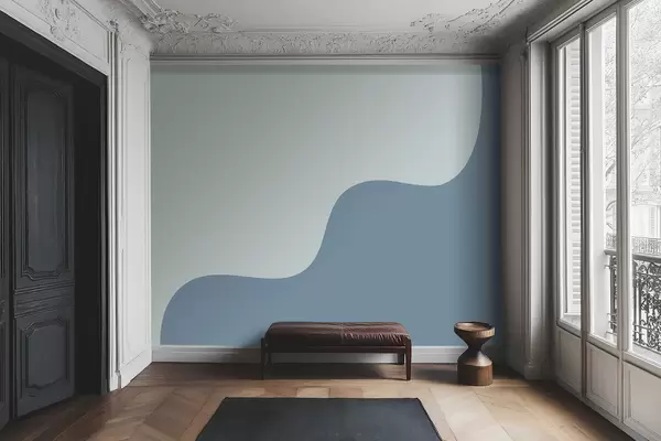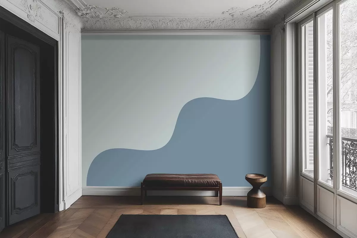 Stenske poslikave Gladke abstraktne oblike v svetlo modrih in modrih odtenkih Št. w05097v1