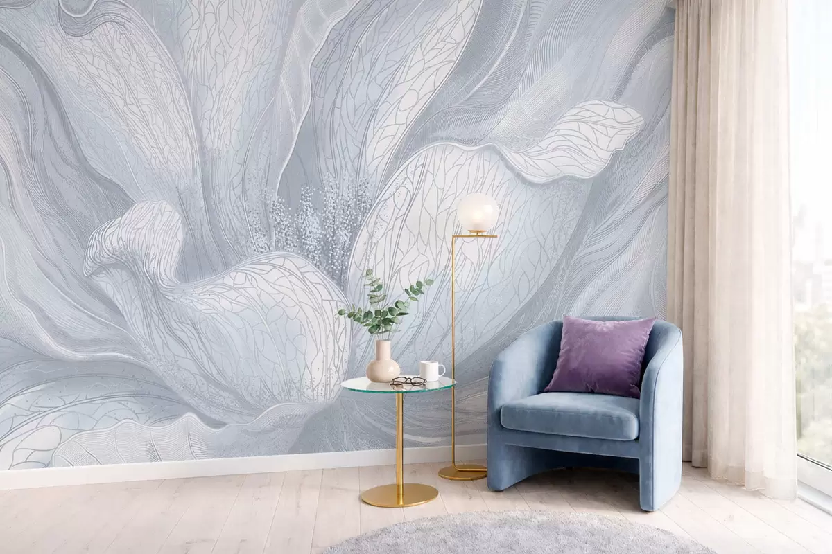 Stenske poslikave Abstraktna cvetlica v hladnih modrih odtenkih Št. w05119v2