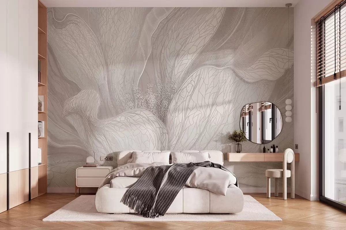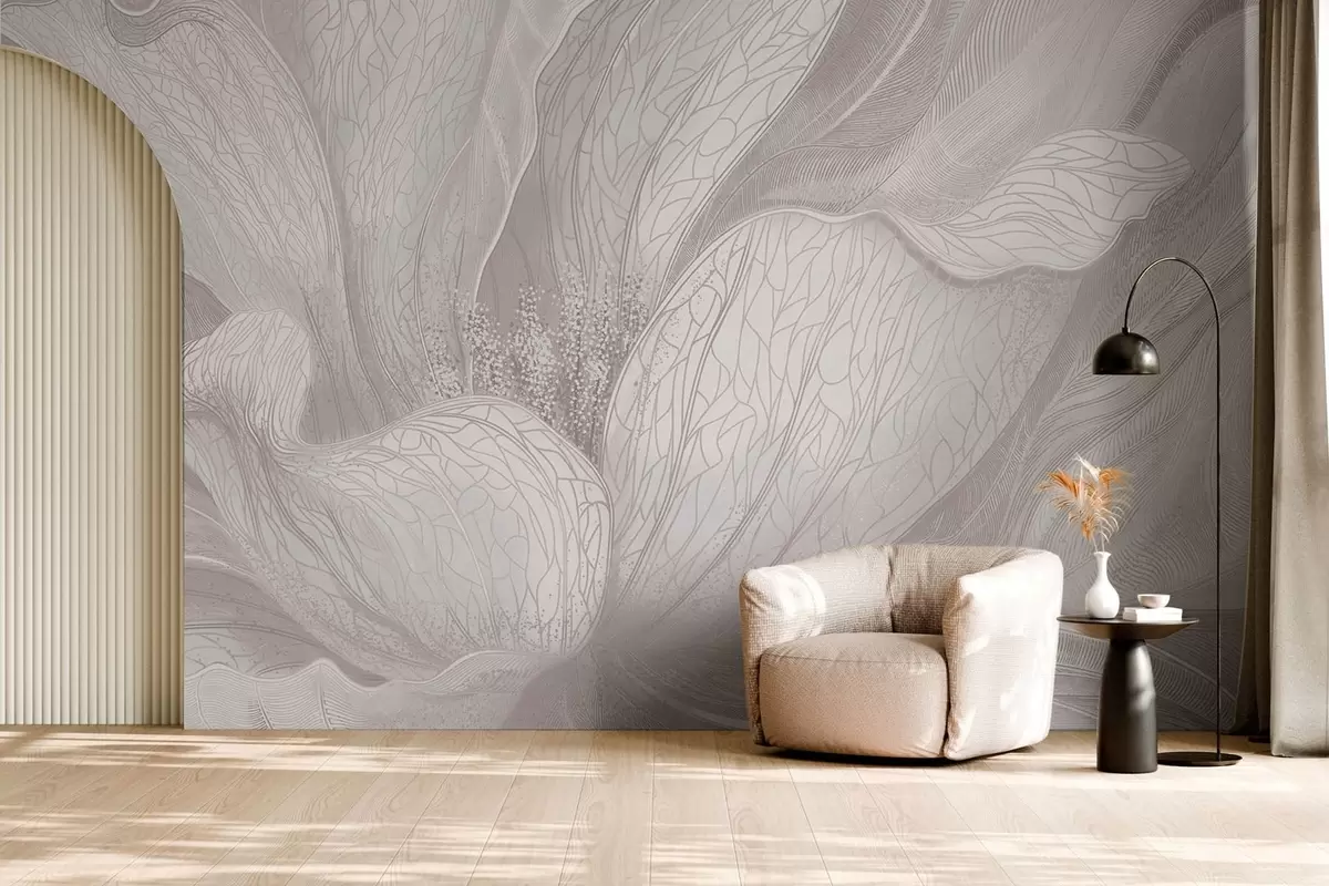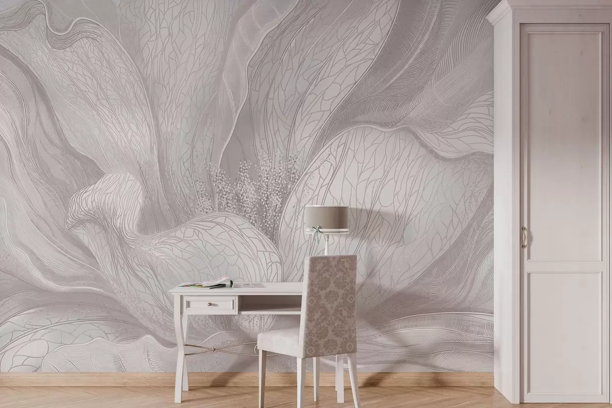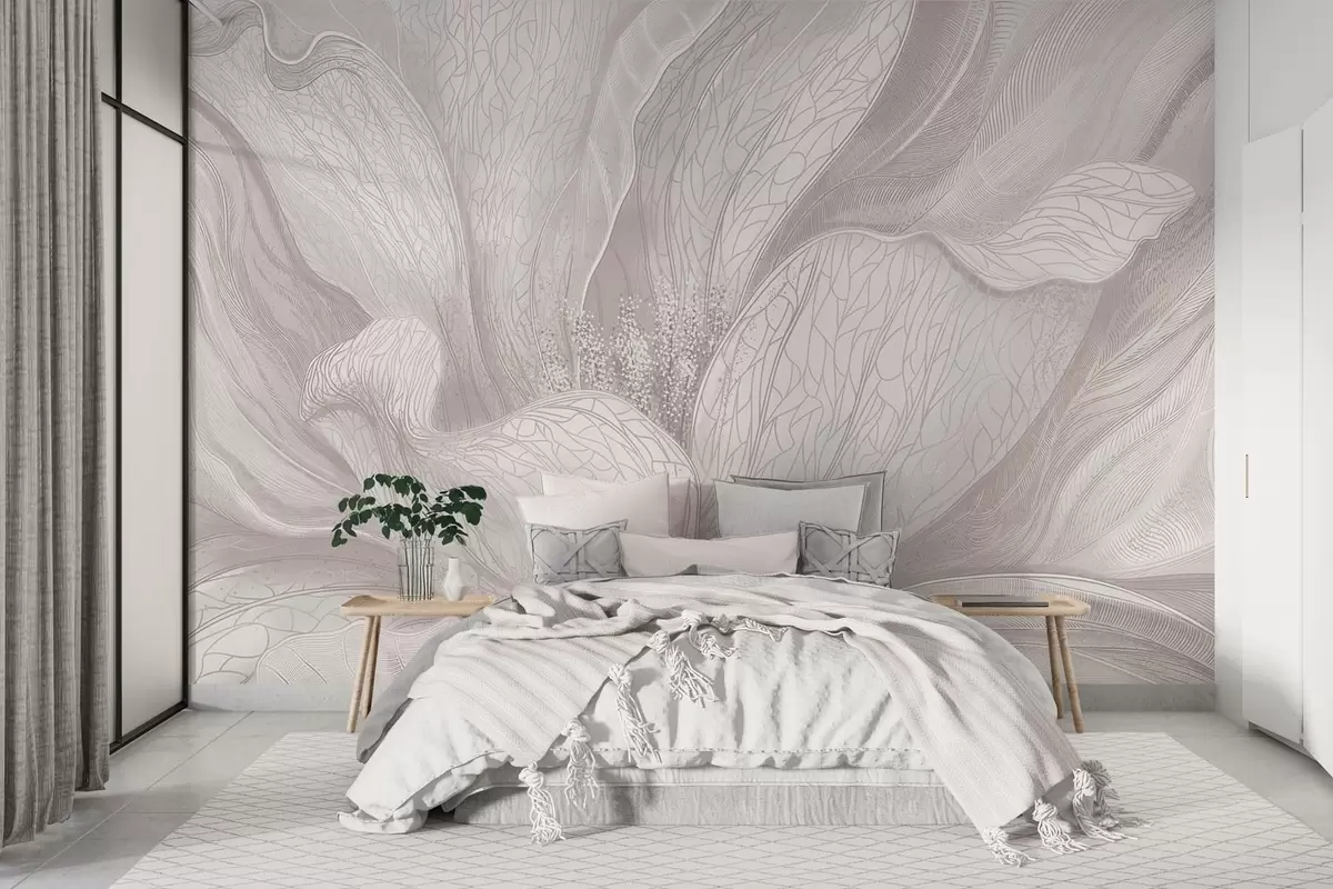 Stenske poslikave Lahkotna abstraktna cvetlica z valovitimi linijami Št. w05119v3