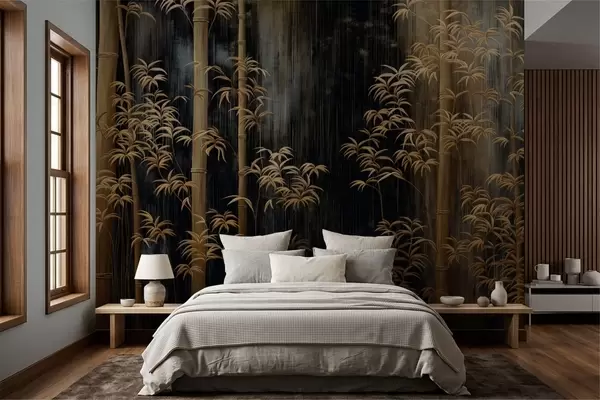 Stenske poslikave Temni bambus na črnem ozadju Št. w05120