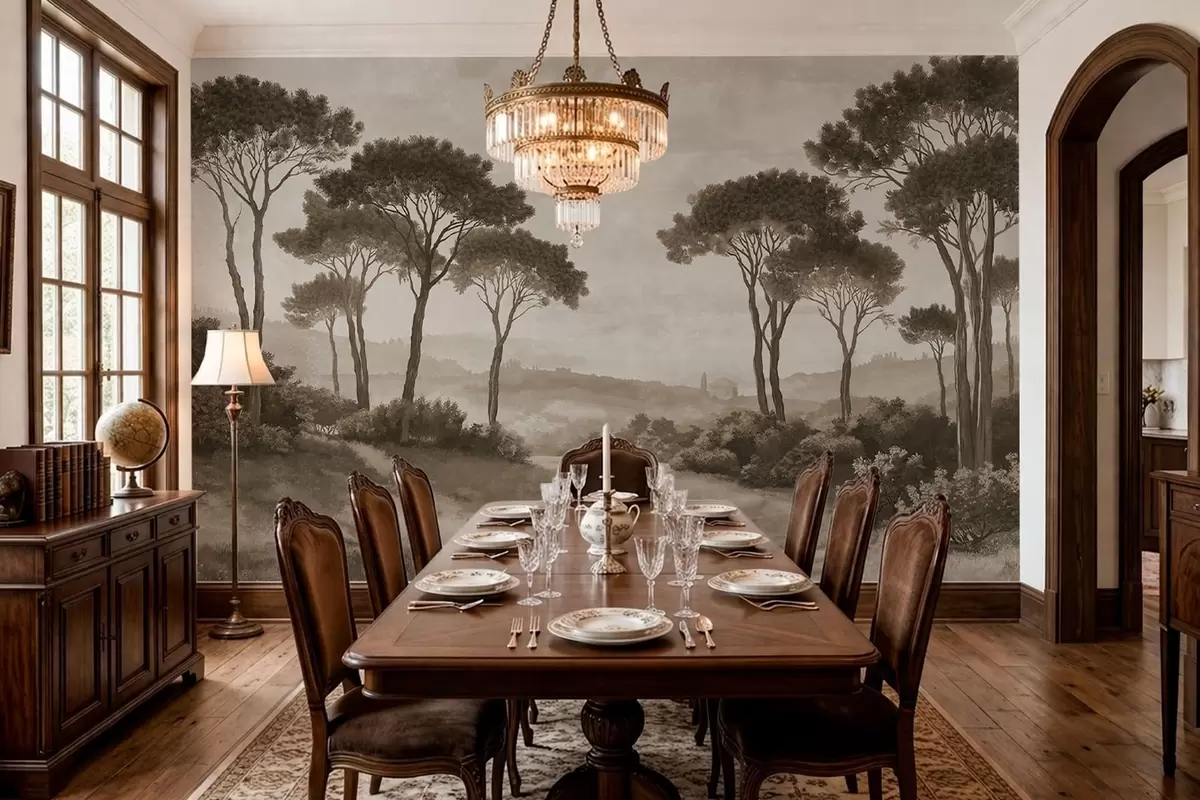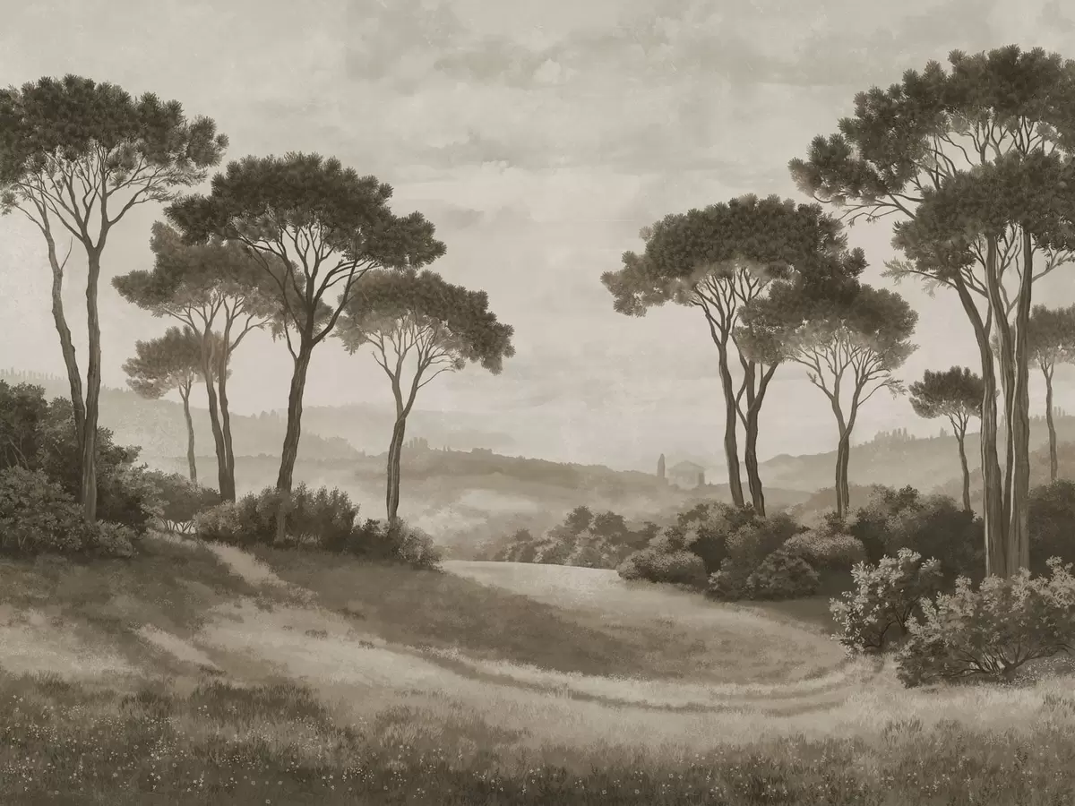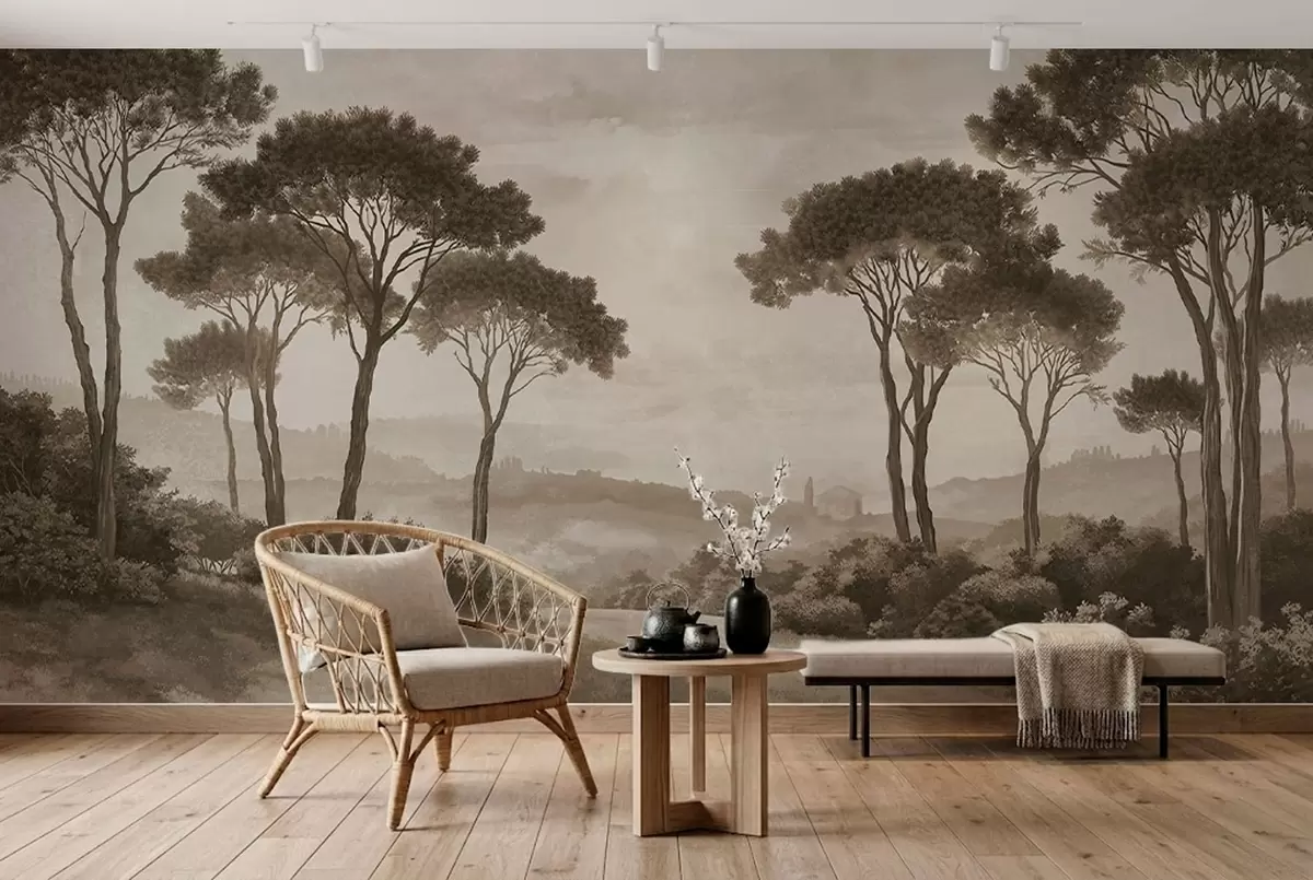Stenske poslikave Pokrajina z drevesi v vintage sepiastih odtenkih Št. w05122v2