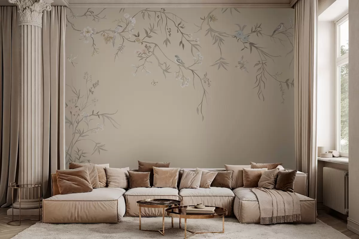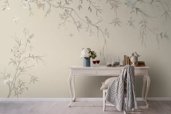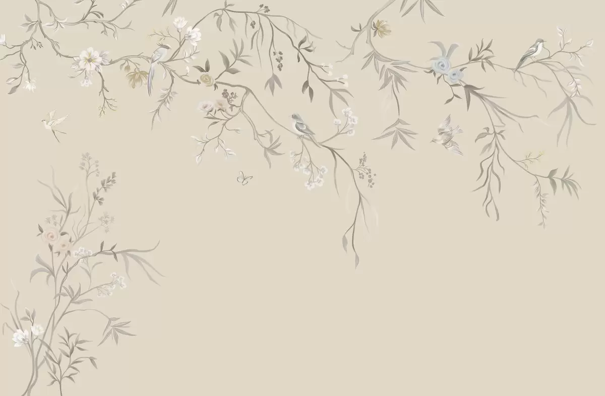 Stenske poslikave Svetli cvetovi in ptice na pastelnih barvah Št. w05127v2
