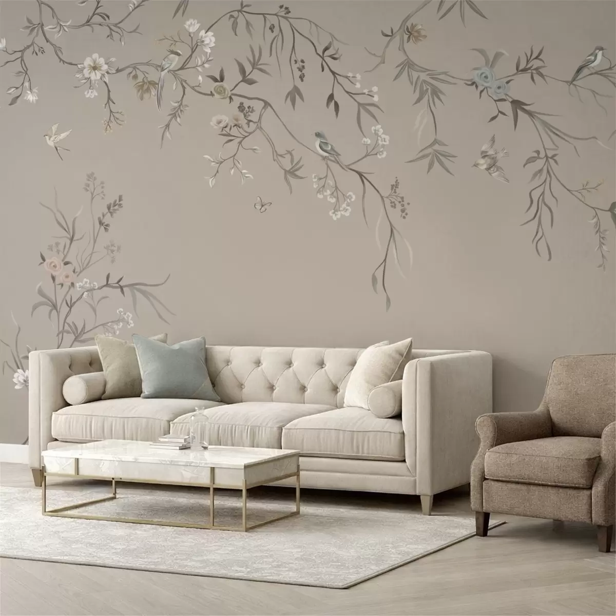 Stenske poslikave Cvetlični ornament s pticami na nevtralnem ozadju Št. w05127v3
