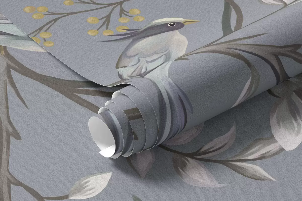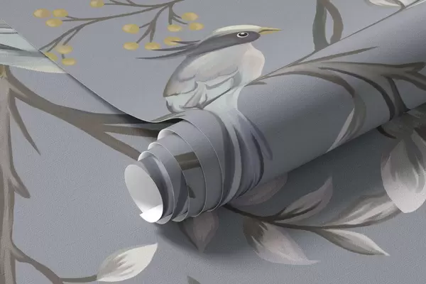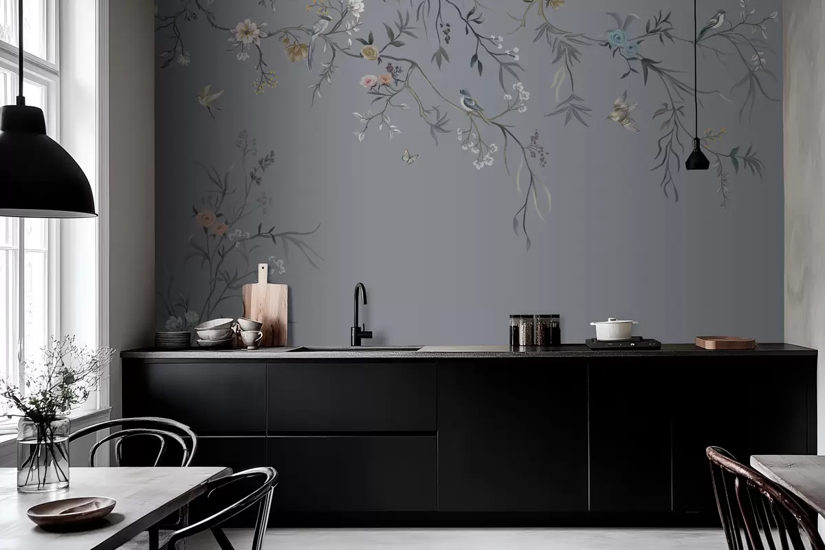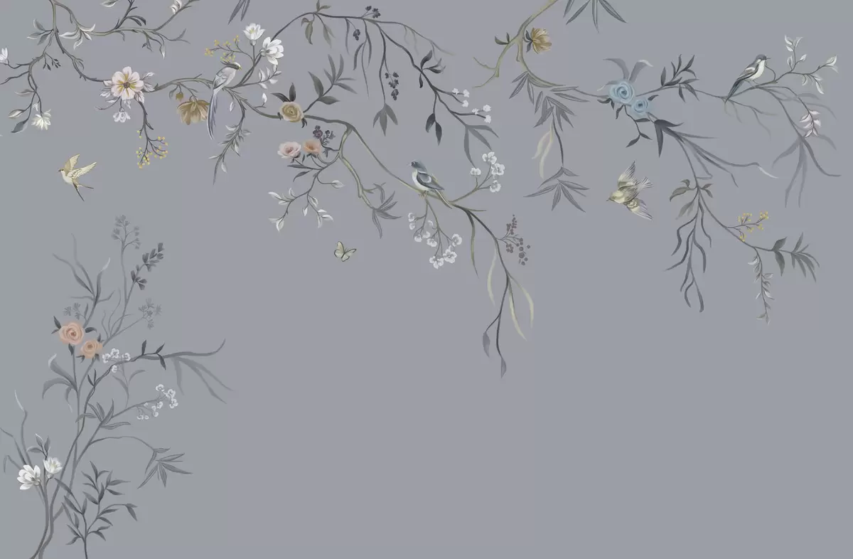 Stenske poslikave Cvetlični veji s pticami na zelenkastem ozadju Št. w05127v5