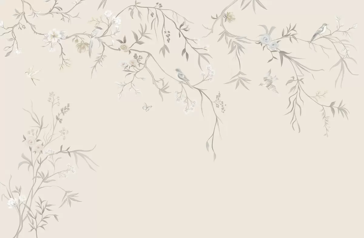 Stenske poslikave Cvetlični veji s pticami na svetlem ozadju Št. w05127v7
