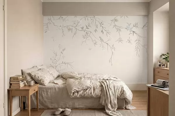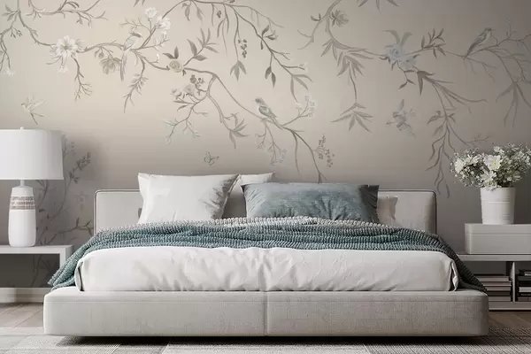 Stenske poslikave Cvetlični veji s pticami na svetlem ozadju Št. w05127v7