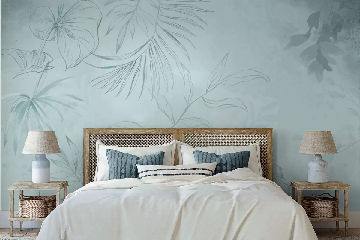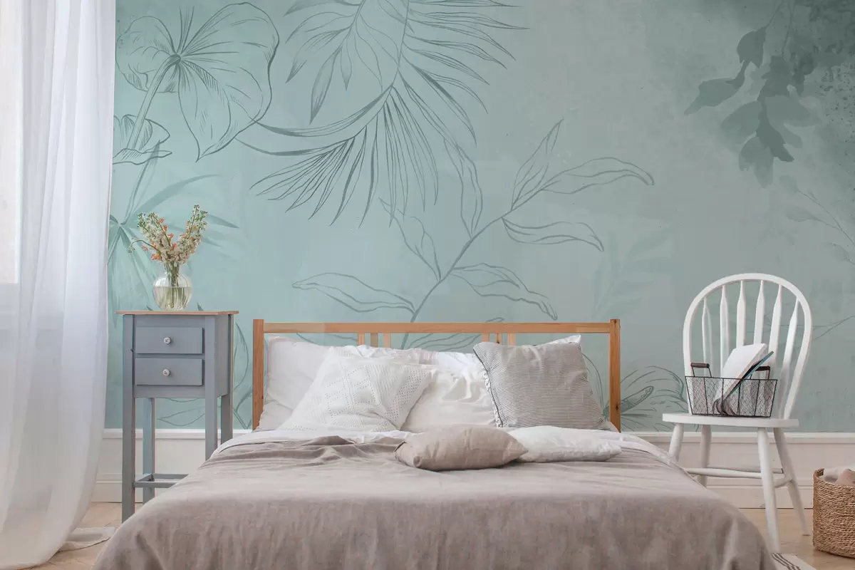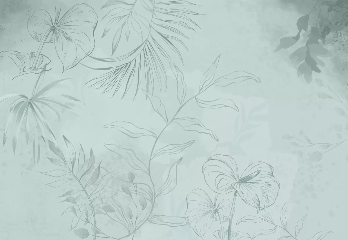 Stenske poslikave Linearne rastline na mehkem zelenkastem ozadju Št. w05128v1