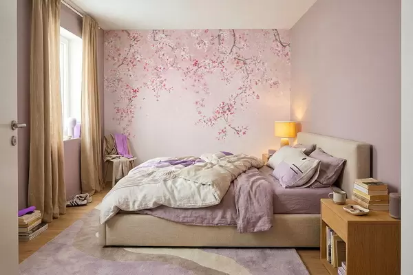 Stenske poslikave Vejice z rožnatimi cvetovi na nežnem pastelno obarvanem ozadju Št. w05129v1