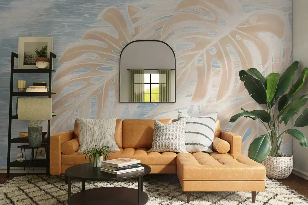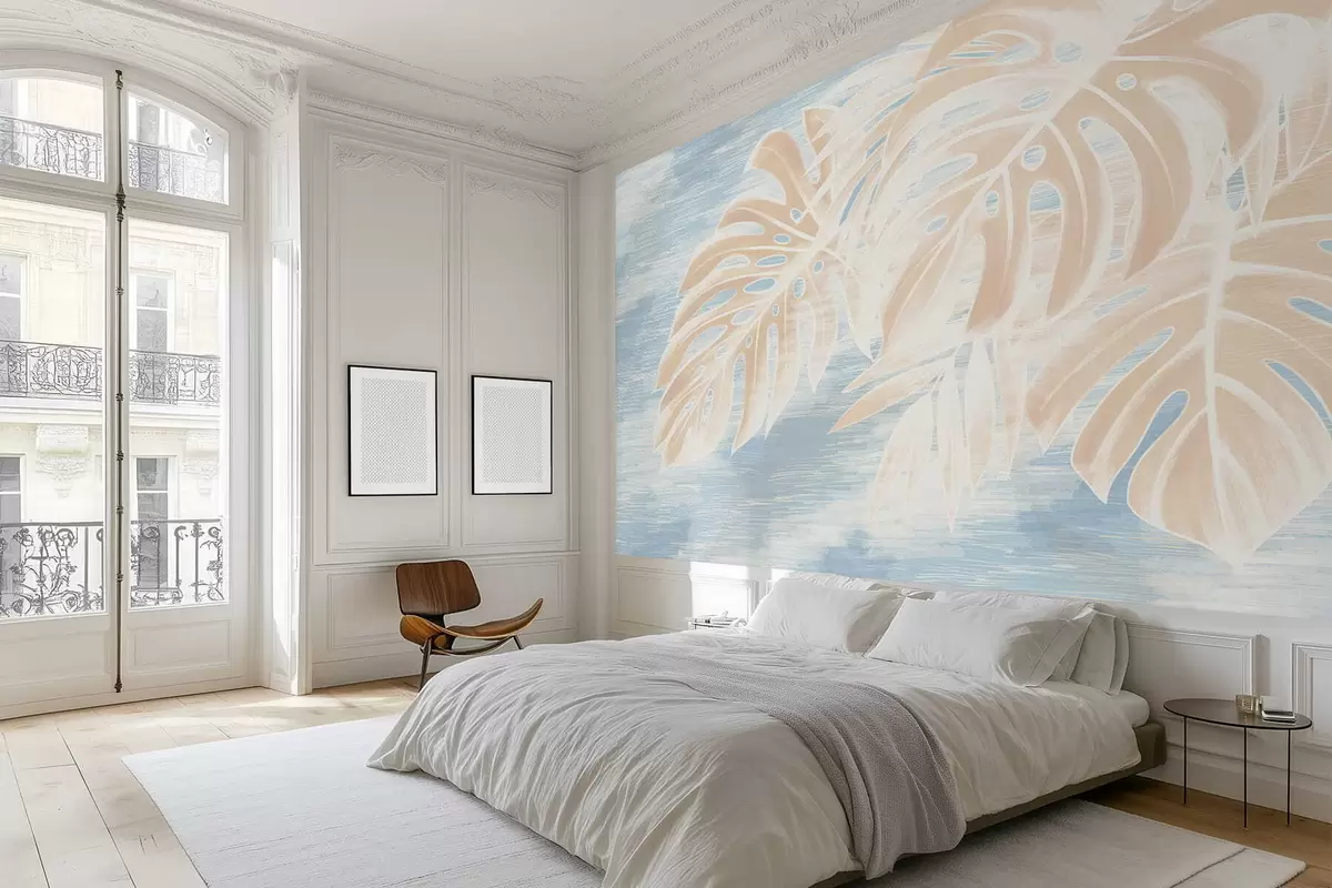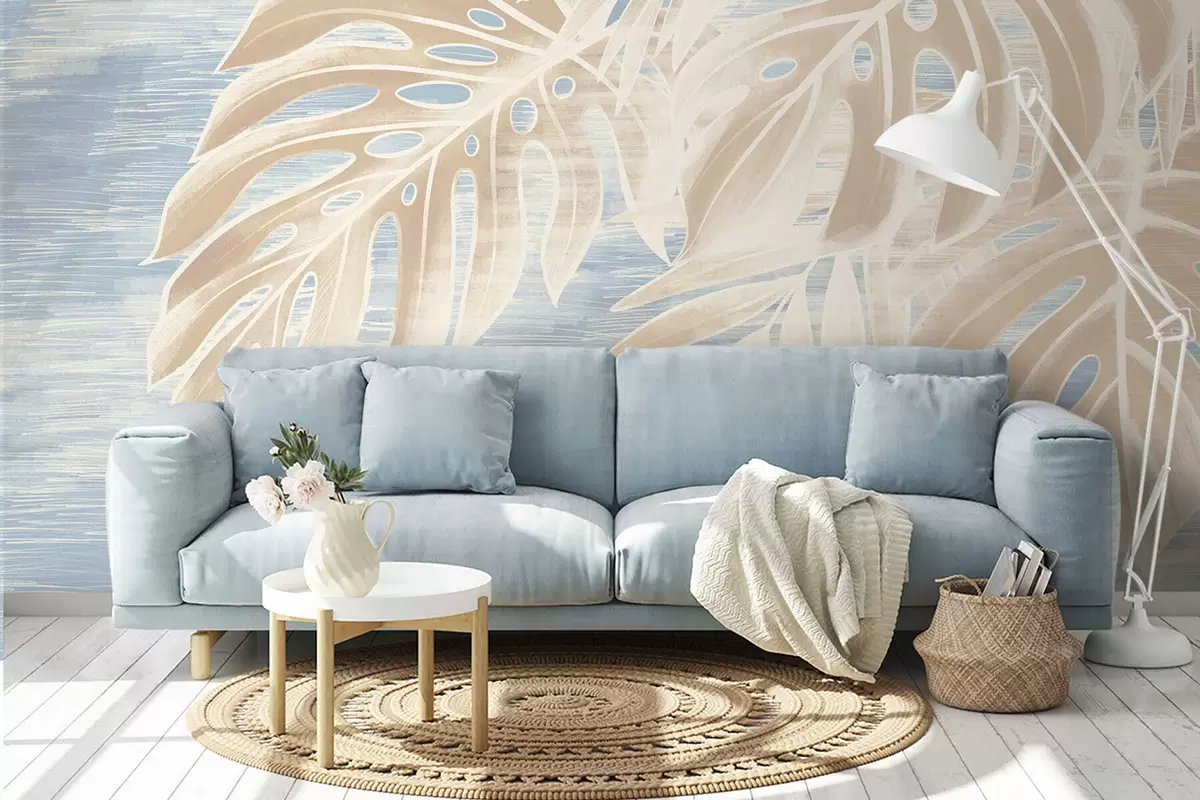 Stenske poslikave Abstraktni listi v toplih bež tonih na svetlem ozadju Št. w05130
