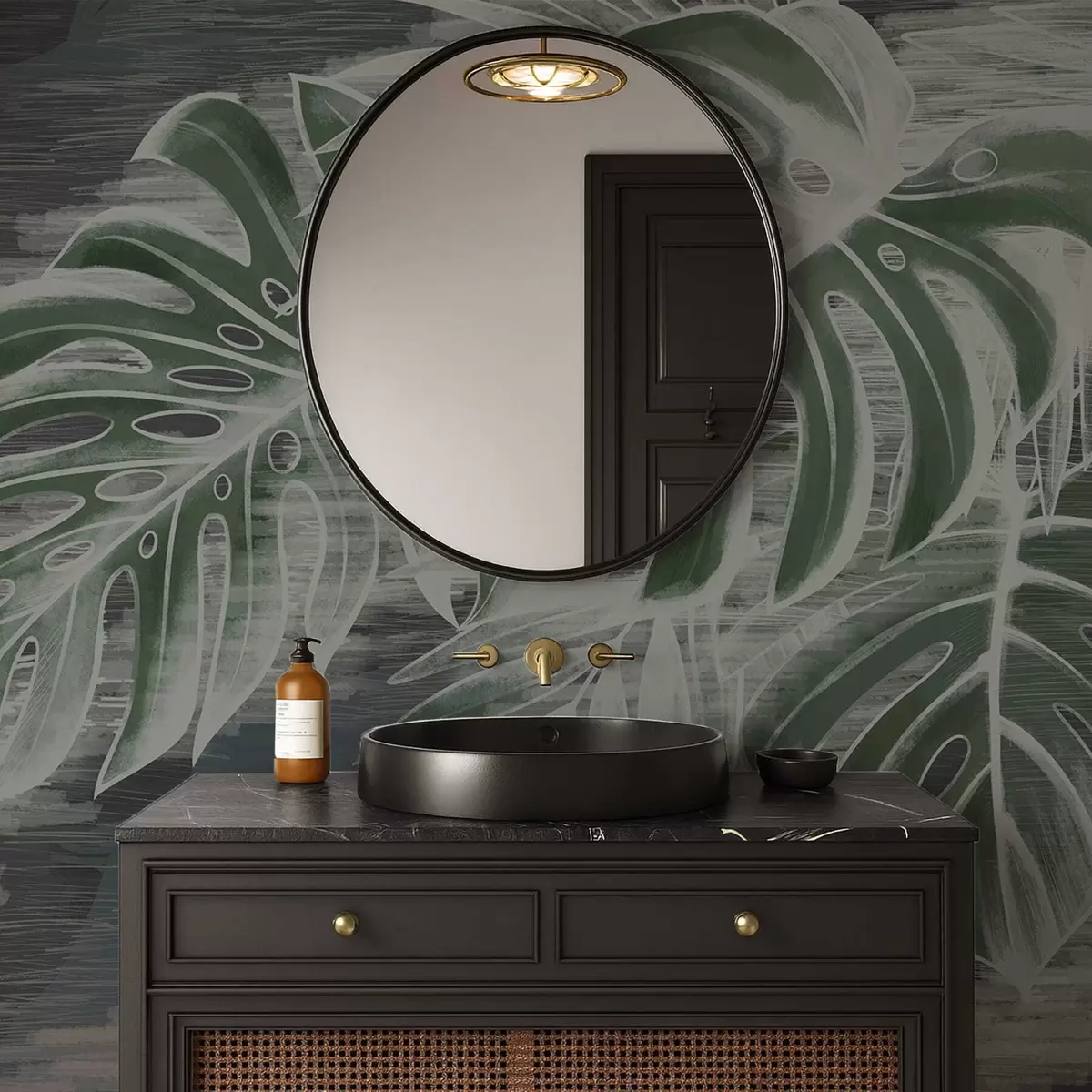 Stenske poslikave Temno zelene liste na teksturiranem temnem ozadju Št. w05130v4