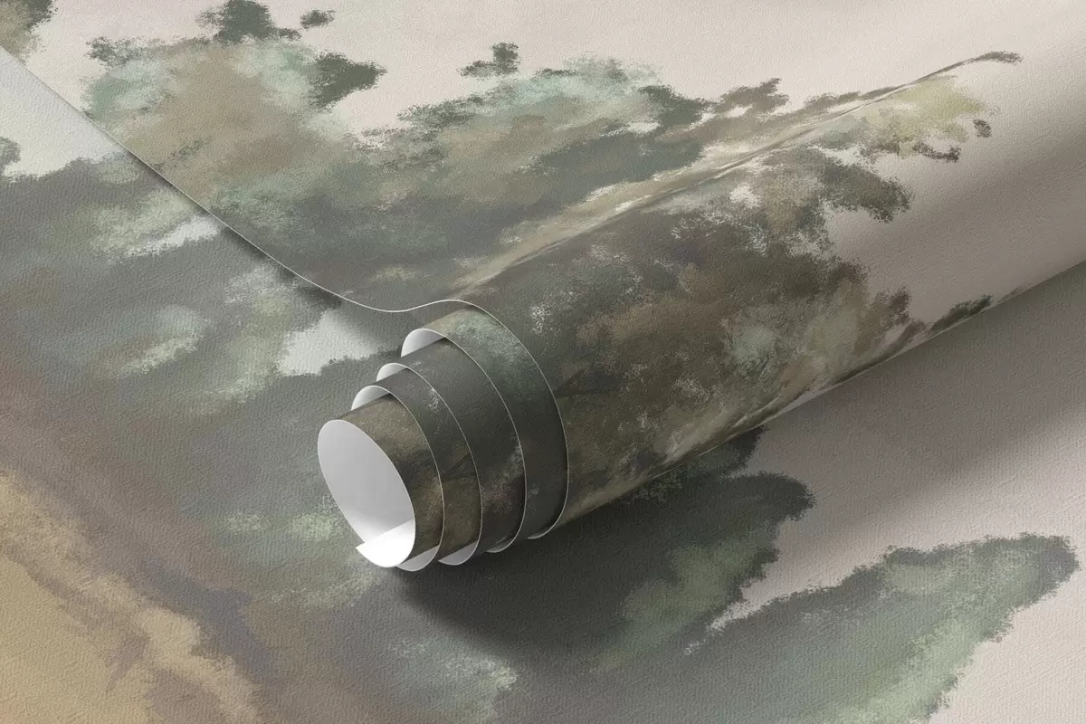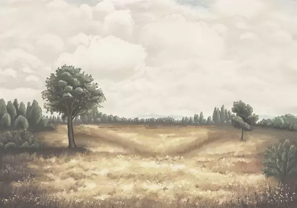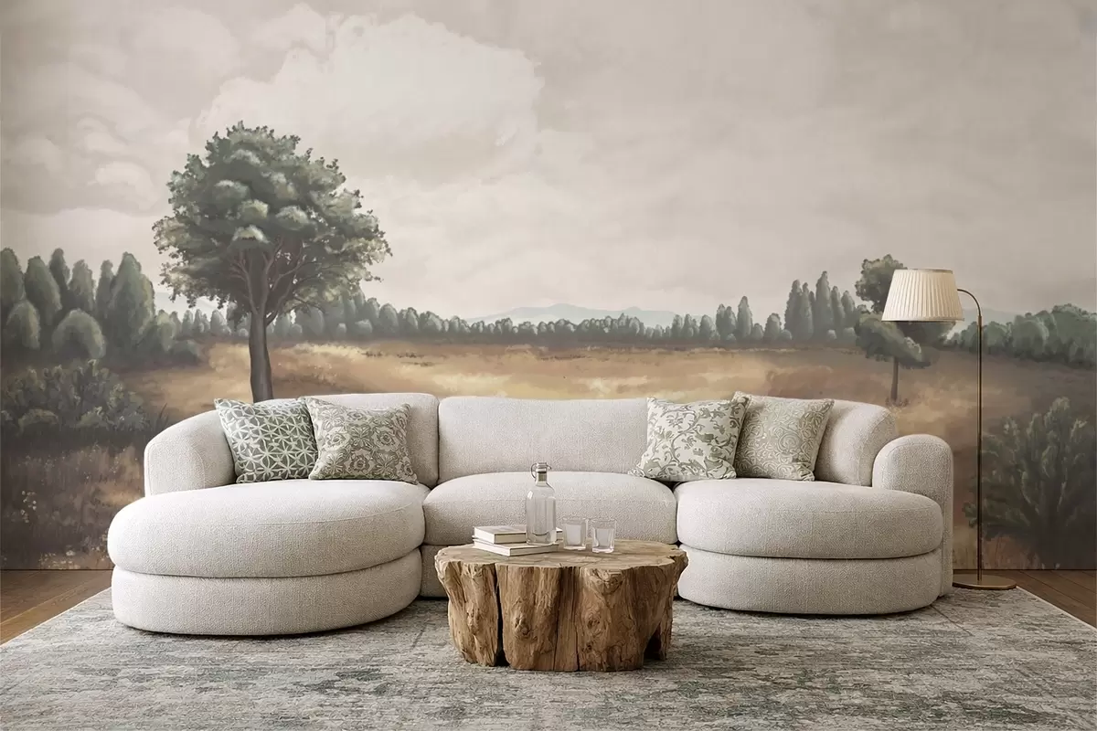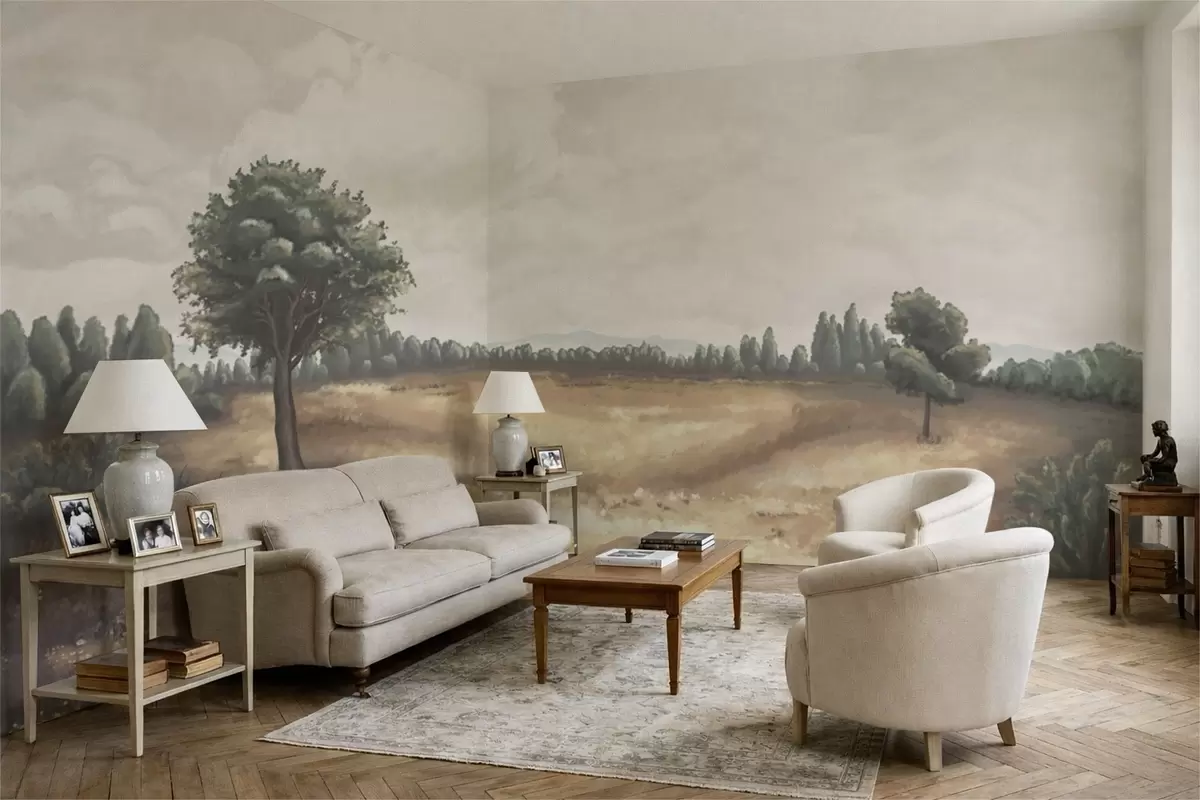Stenske poslikave Naslikana pokrajina z drevesi in odprtim poljem Št. w05131