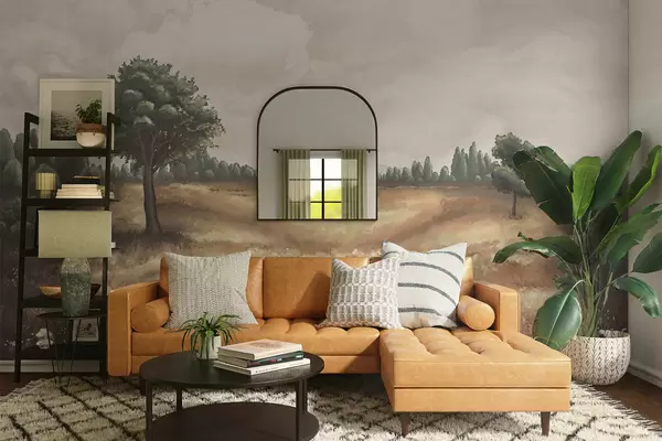 Stenske poslikave Naslikana pokrajina z drevesi in odprtim poljem Št. w05131
