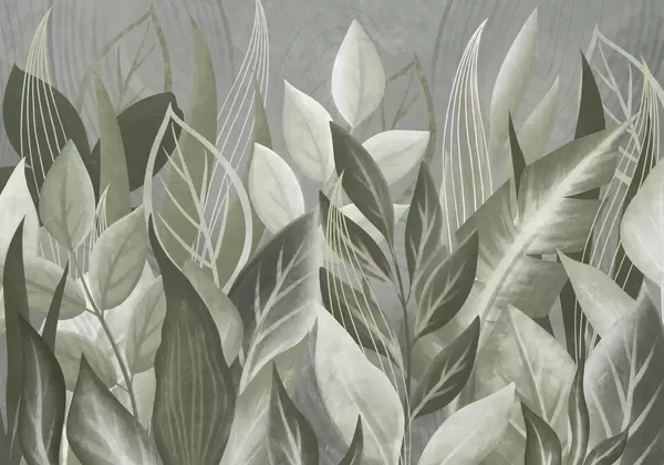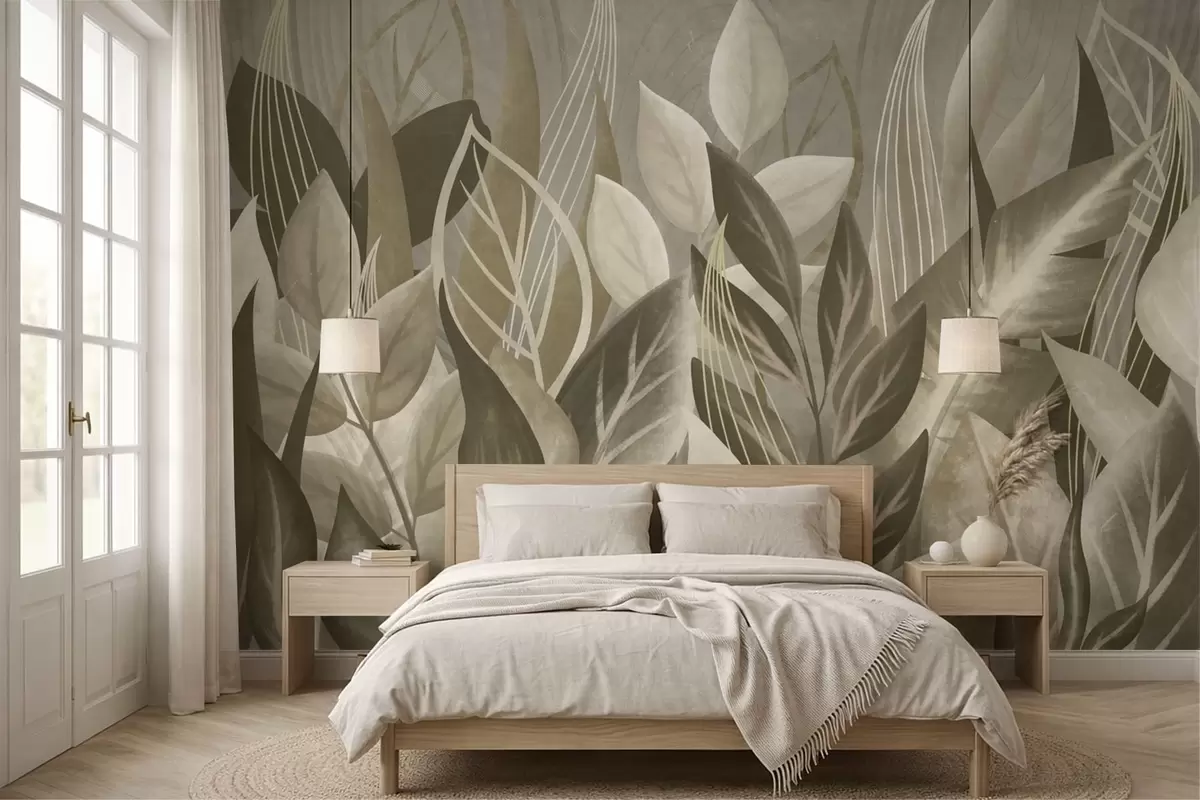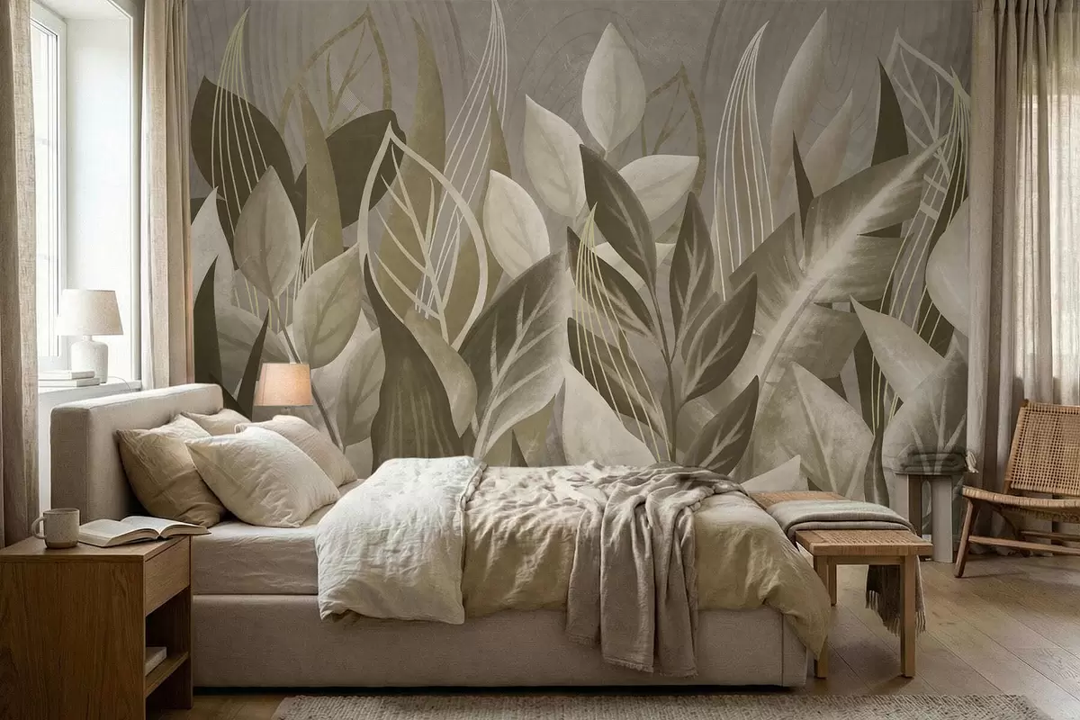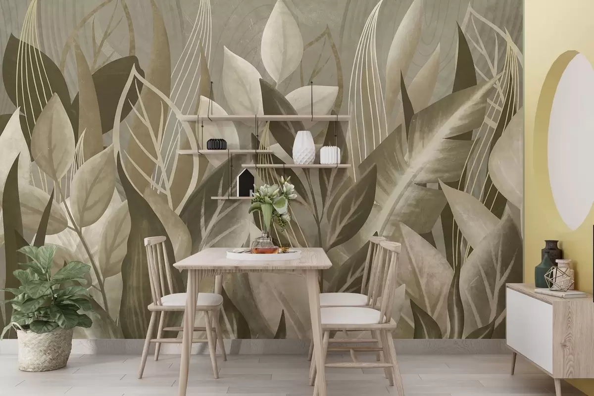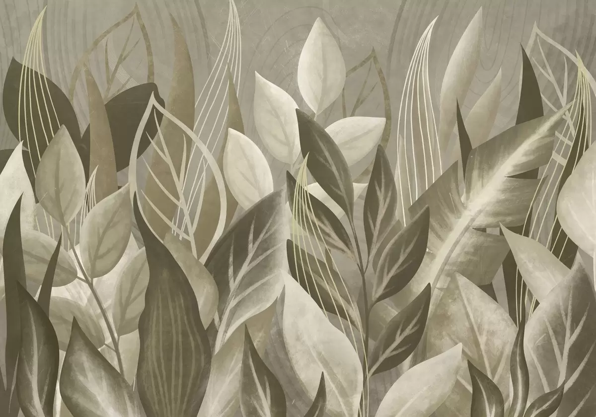 Stenske poslikave Abstraktni listi v bež in zelenih odtenkih Št. w05148