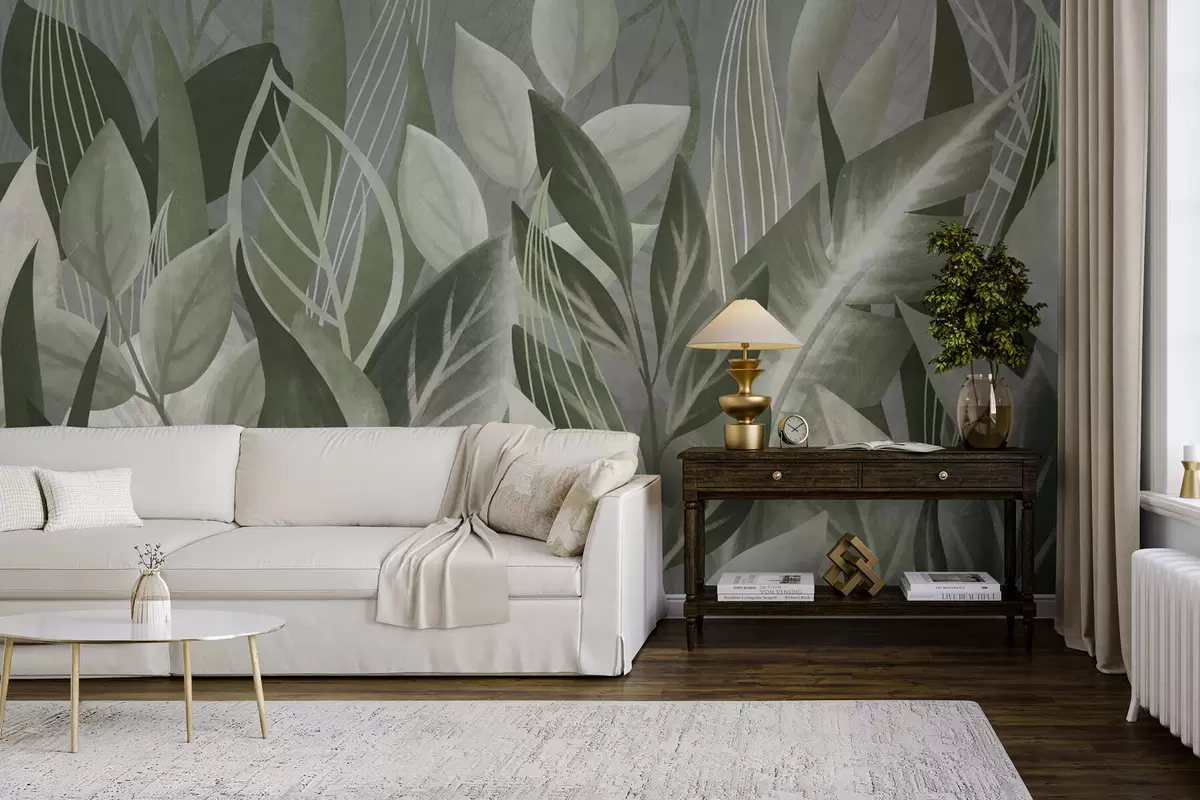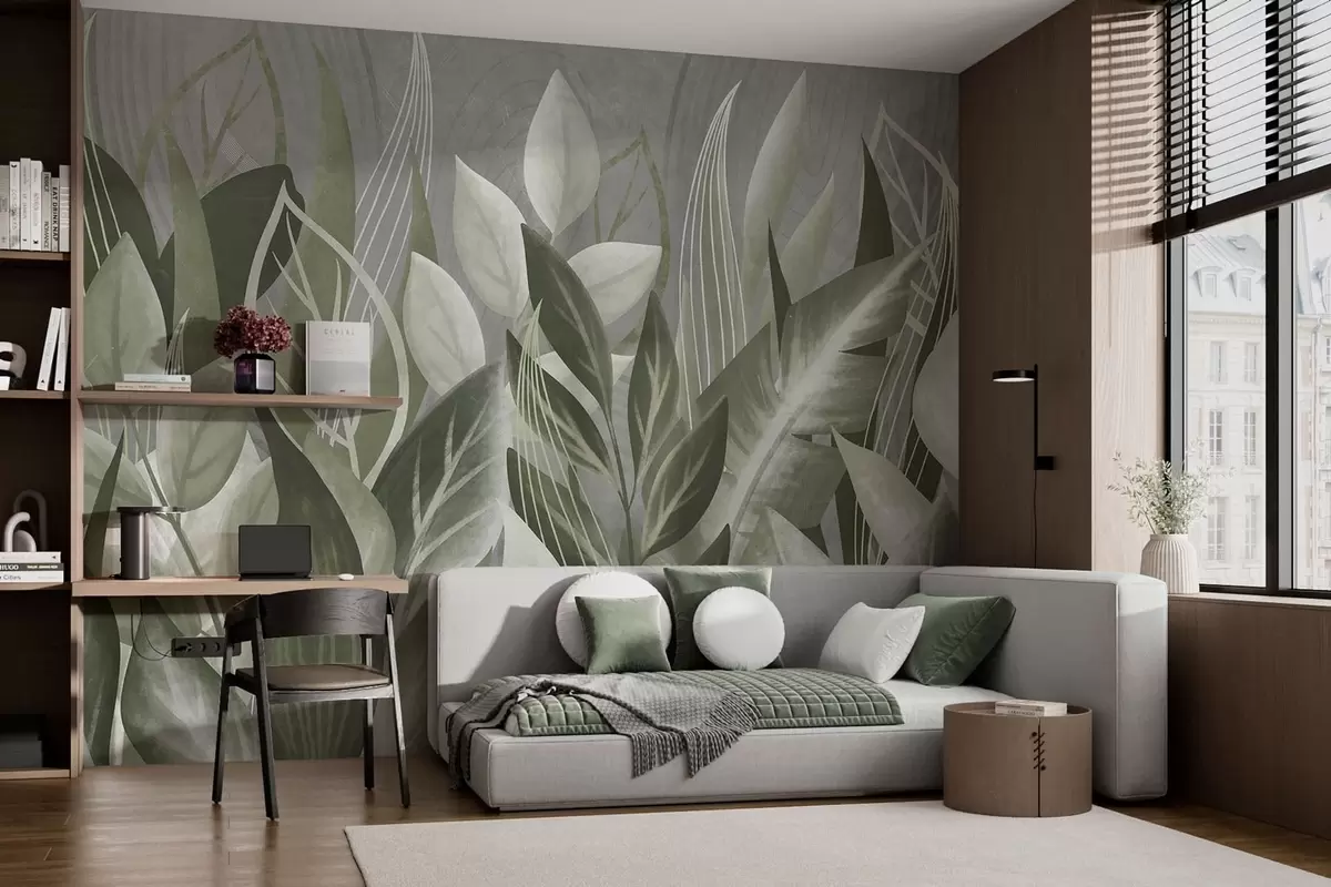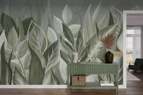 Stenske poslikave Listje v sivo-zelenih odtenkih Št. w05148v1