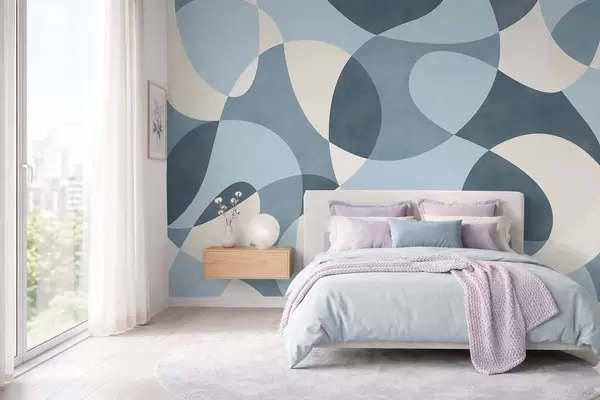Stenske poslikave Abstraktni vzorec z zaobljenimi oblikami v modrih odtenkih Št. w05149v2