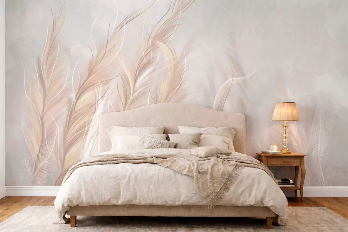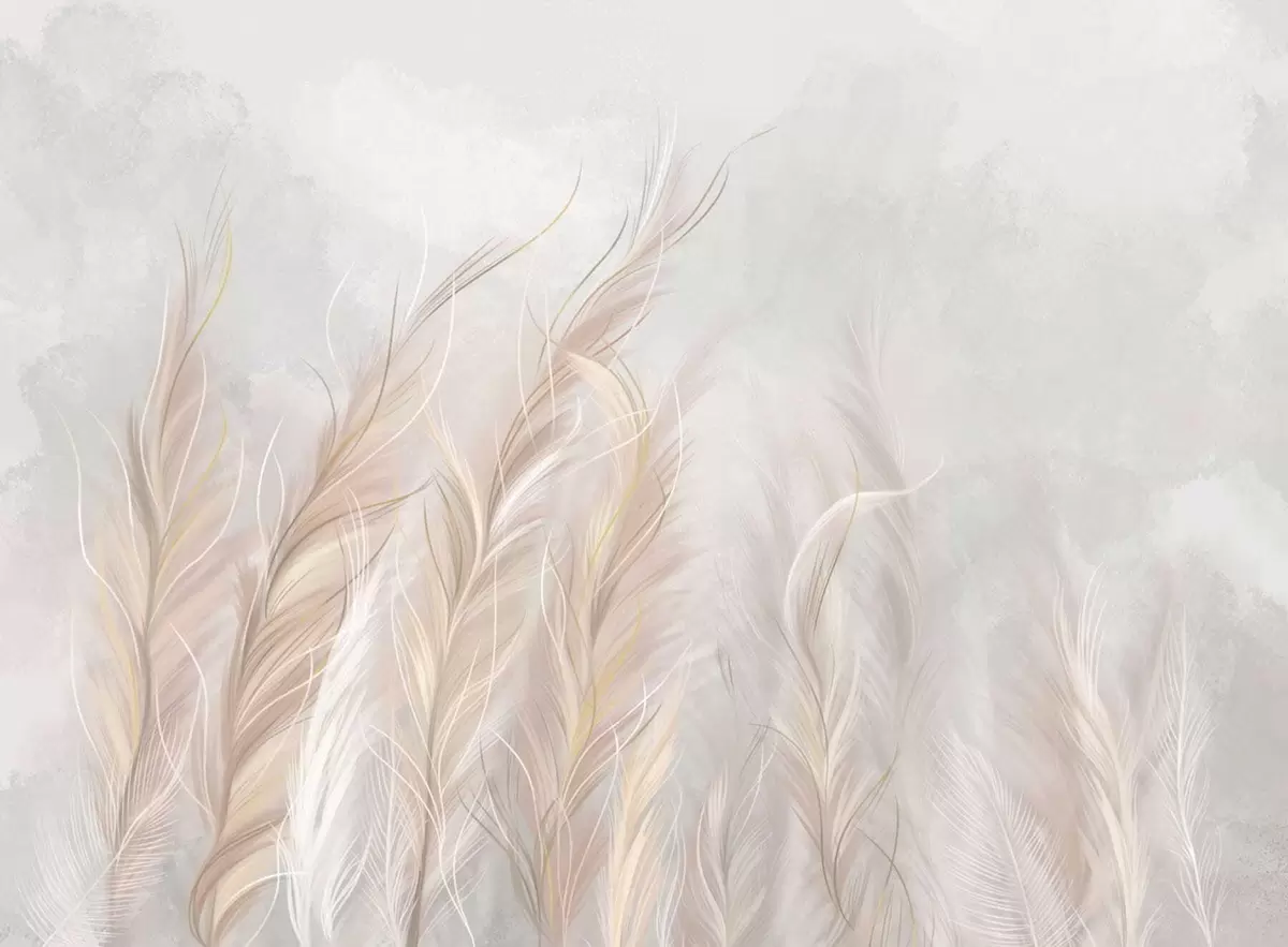 Stenske poslikave Mehka abstraktna peresa v svetlih nevtralnih tonih Št. w05153