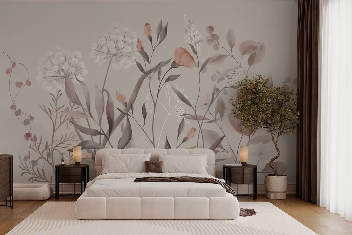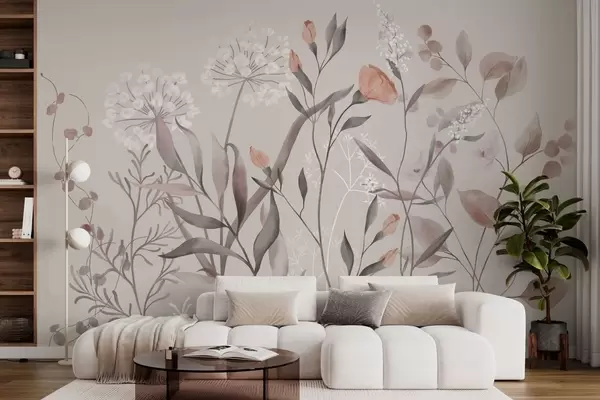 Stenske poslikave Zračne divje rastline v pastelnih odtenkih Št. w05154