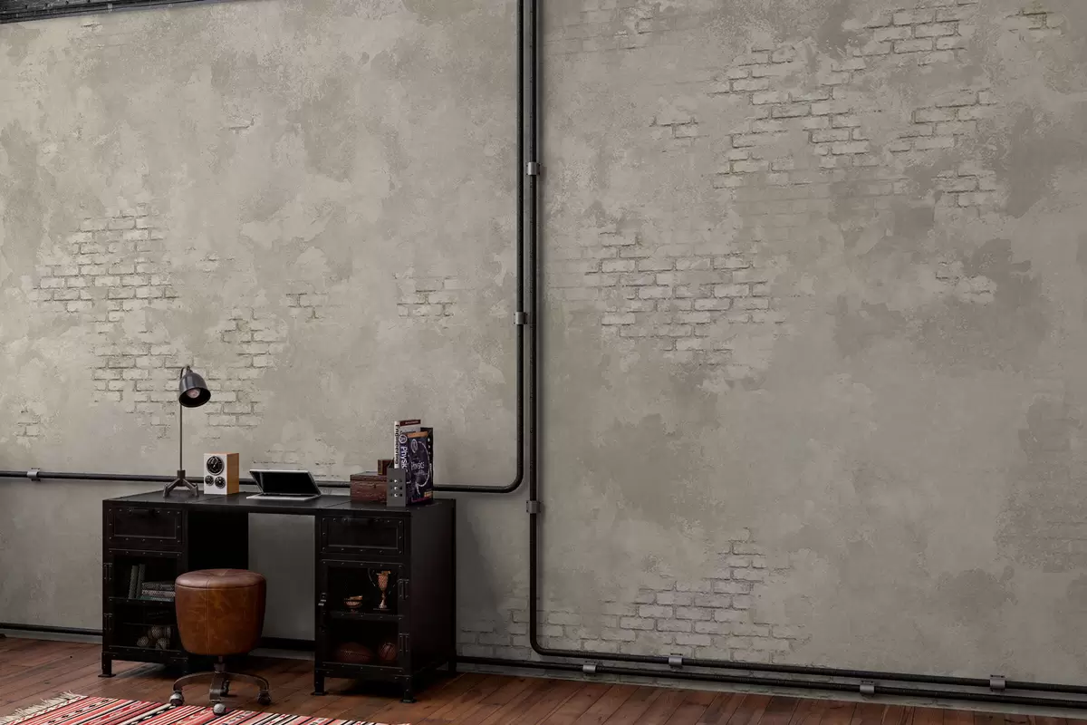 Stenske poslikave Svetel omet v grunge stilu z odkrivljenimi deli opeke Št. w05161v1
