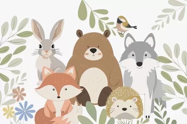 Stenske poslikave Simpatične gozdne živali Št. w05165