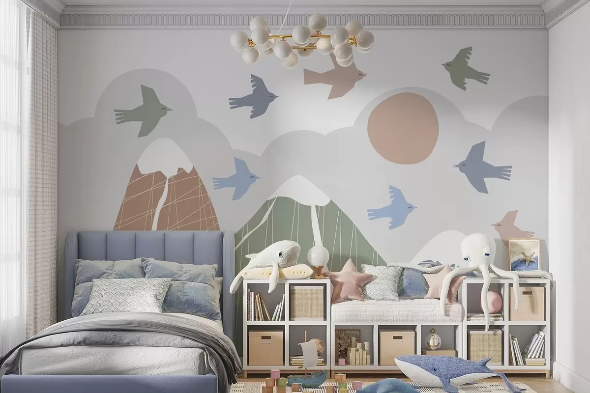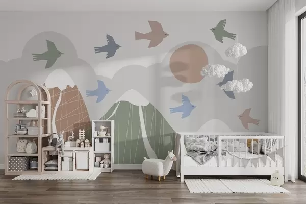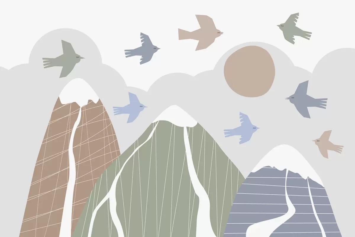 Stenske poslikave Skandinavske gore in ptice Št. w05166v1