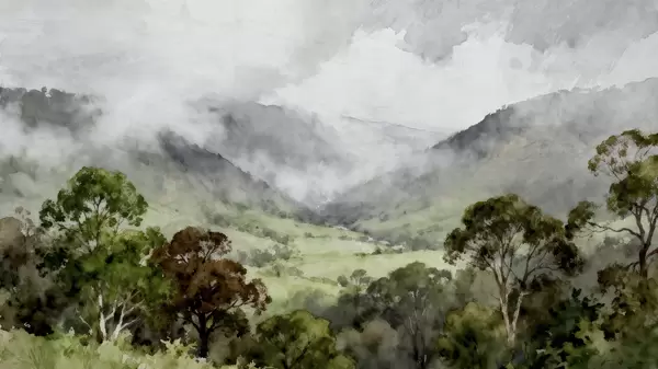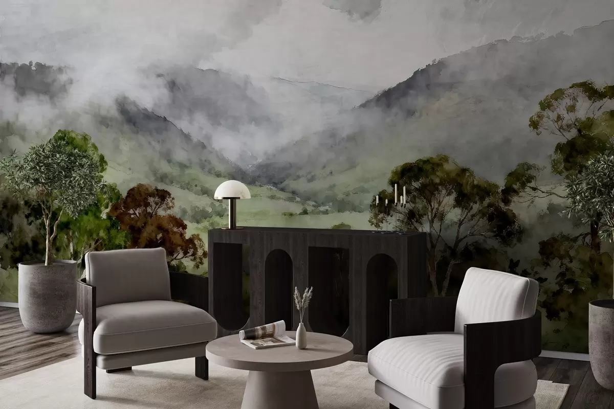 Stenske poslikave Naslikana pokrajina v megli Št. w05185