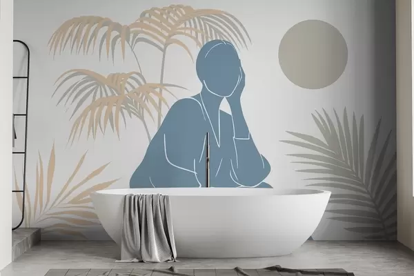 stenske poslikave Silhueta ženske in palmovih listov w05190v1