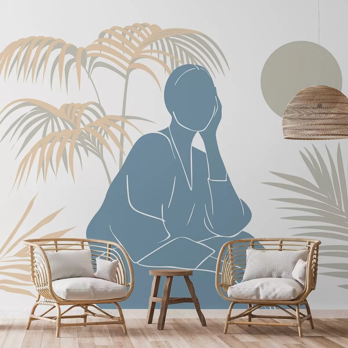 Stenske poslikave Silhueta ženske in palmovih listov Št. w05190v1