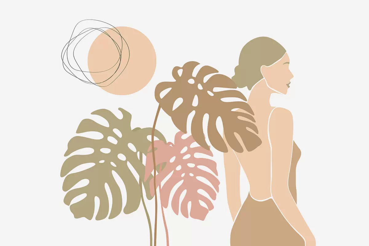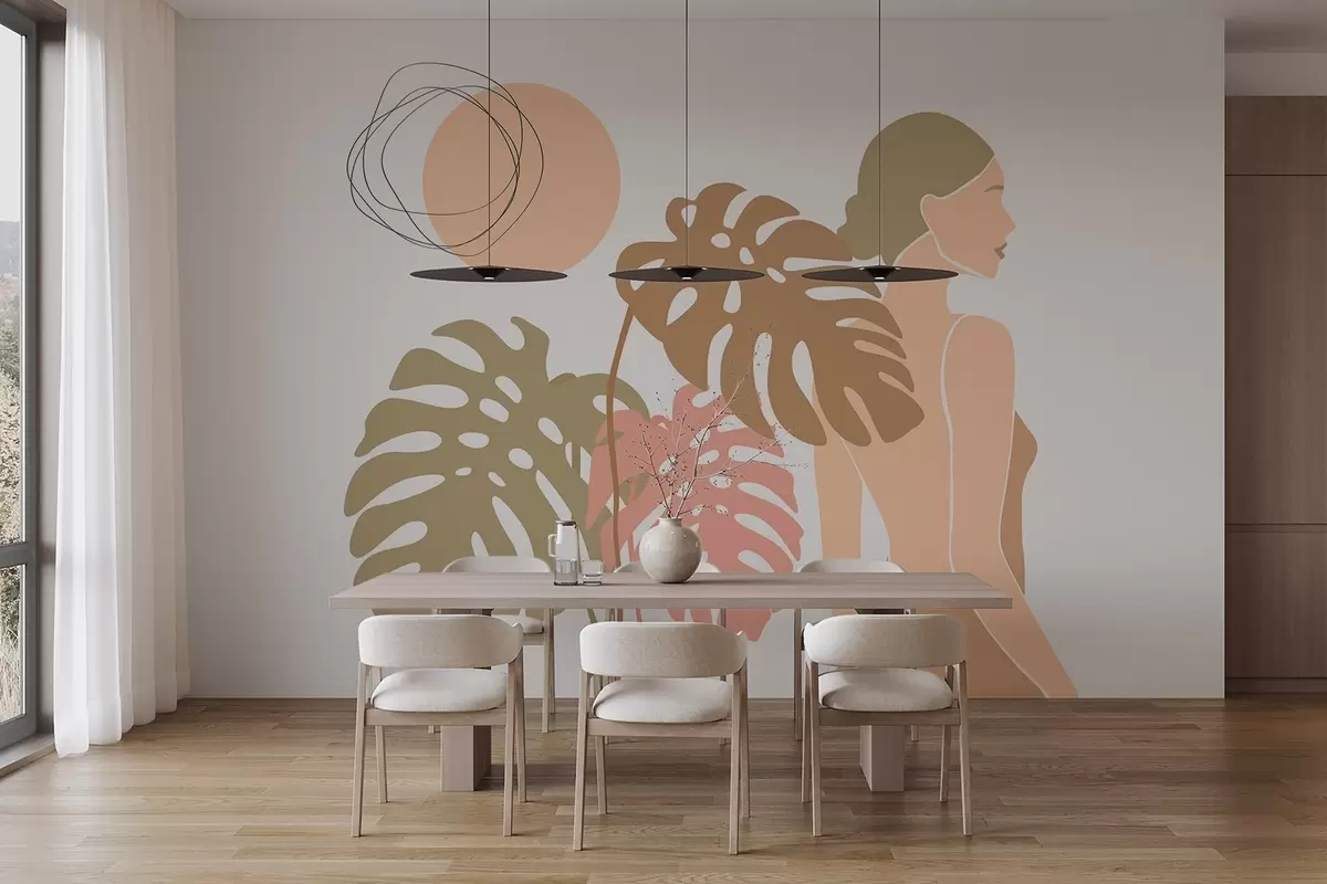 Stenske poslikave Silhueta ženske ob tropskih listih Št. w05192v1