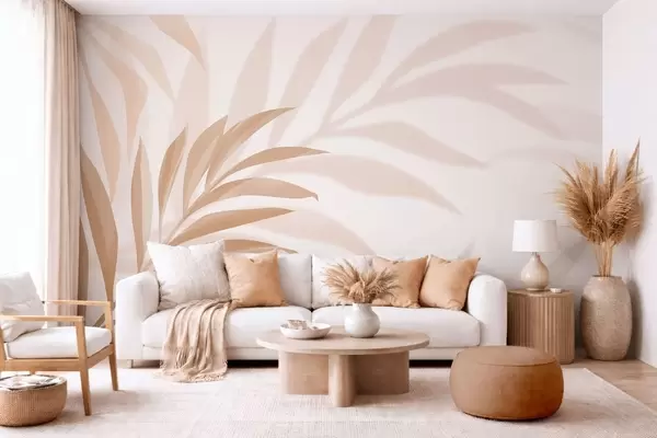 Stenske poslikave velike ukrivljene palmovih listov v bež in rjavih odtenkih Št. w05211